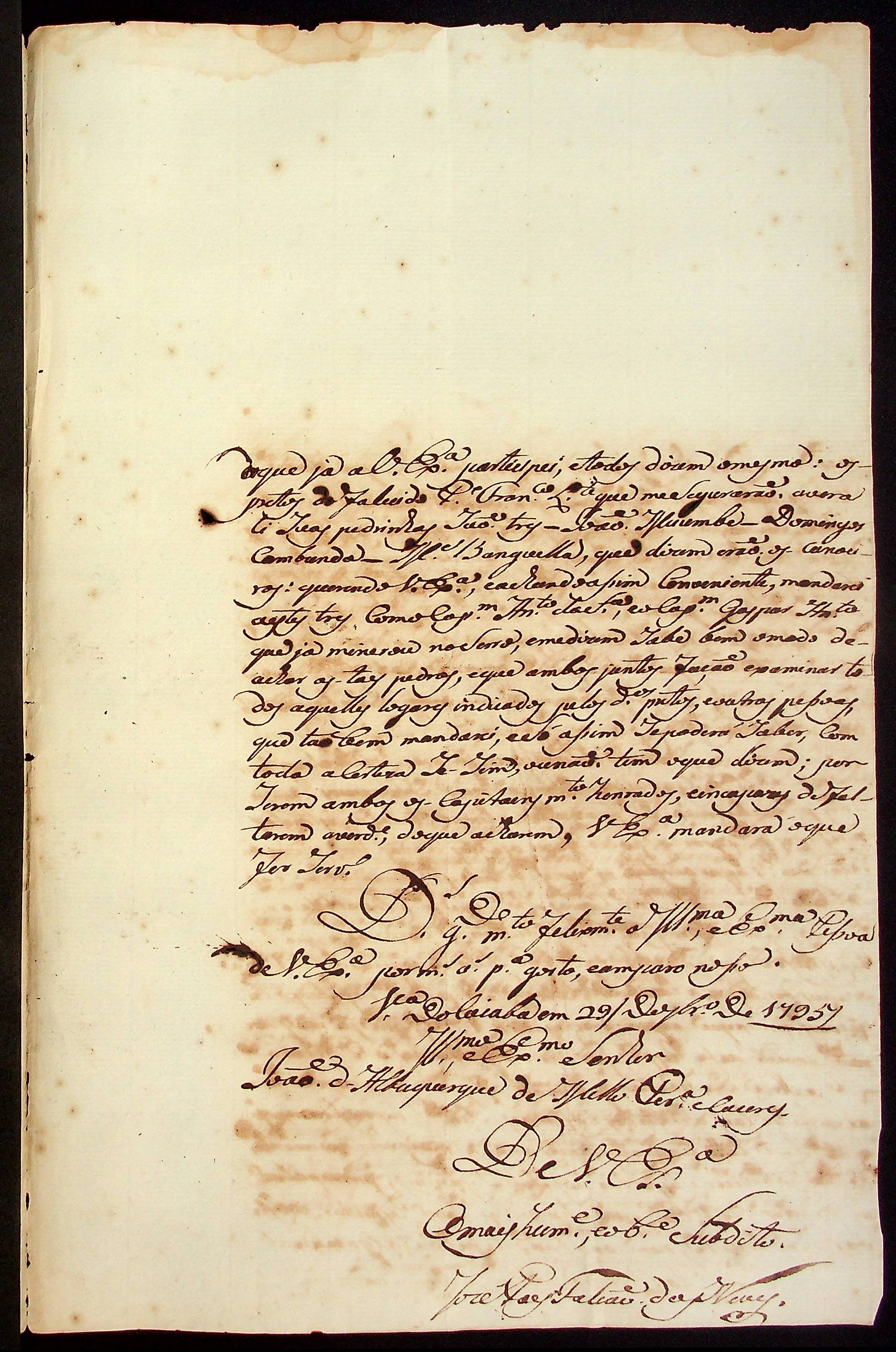 CARTA do [Mestre de Campo] José Paes Falcão das Neves ao [Governador e Capitão-General da Capitania de Mato Grosso] João de Albuquerque de Mello Pereira e Cáceres.