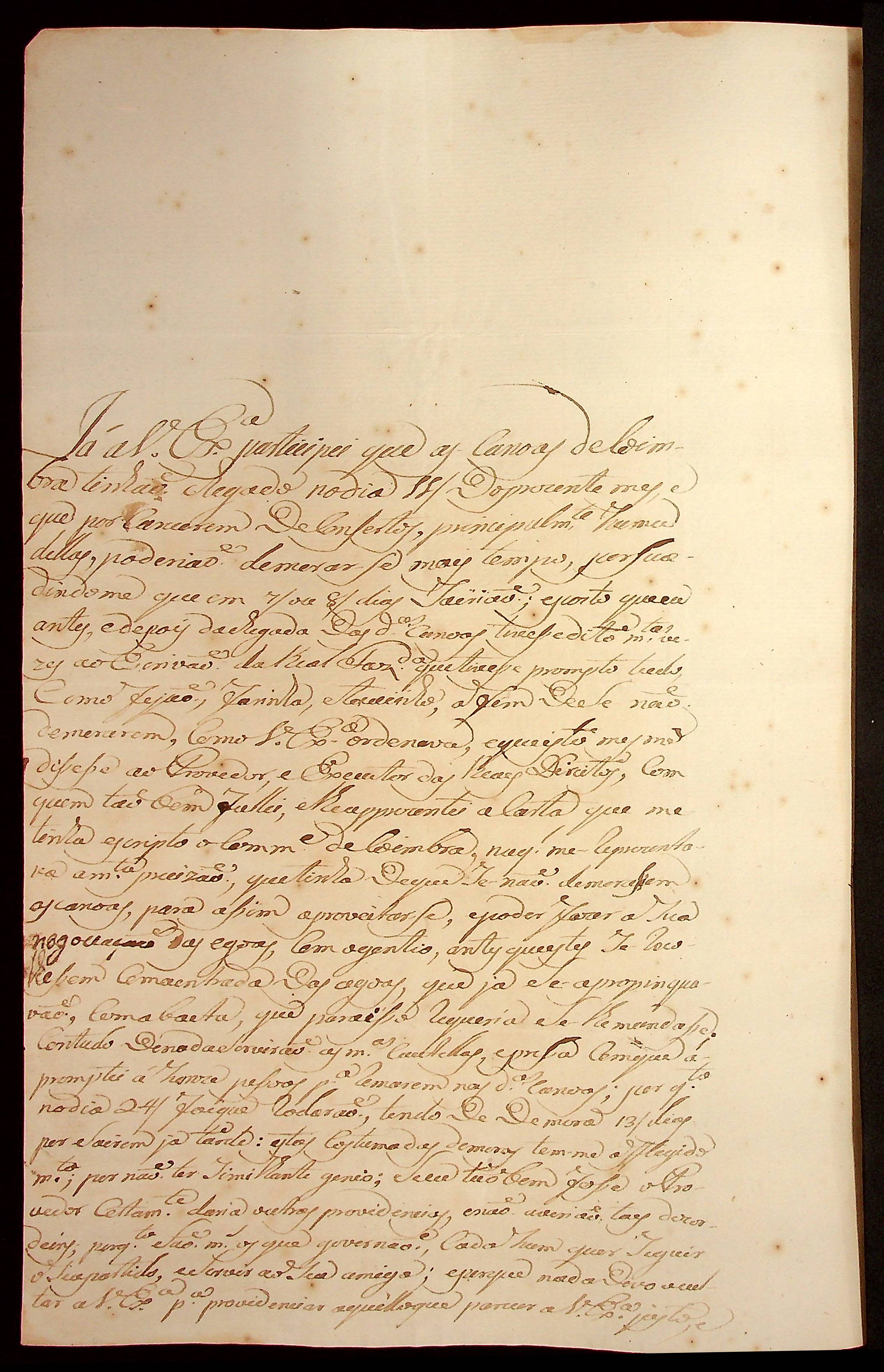 CARTA do [Mestre de Campo] José Paes Falcão das Neves ao [Governador e Capitão-General da Capitania de Mato Grosso] João de Albuquerque de Mello Pereira e Cáceres.