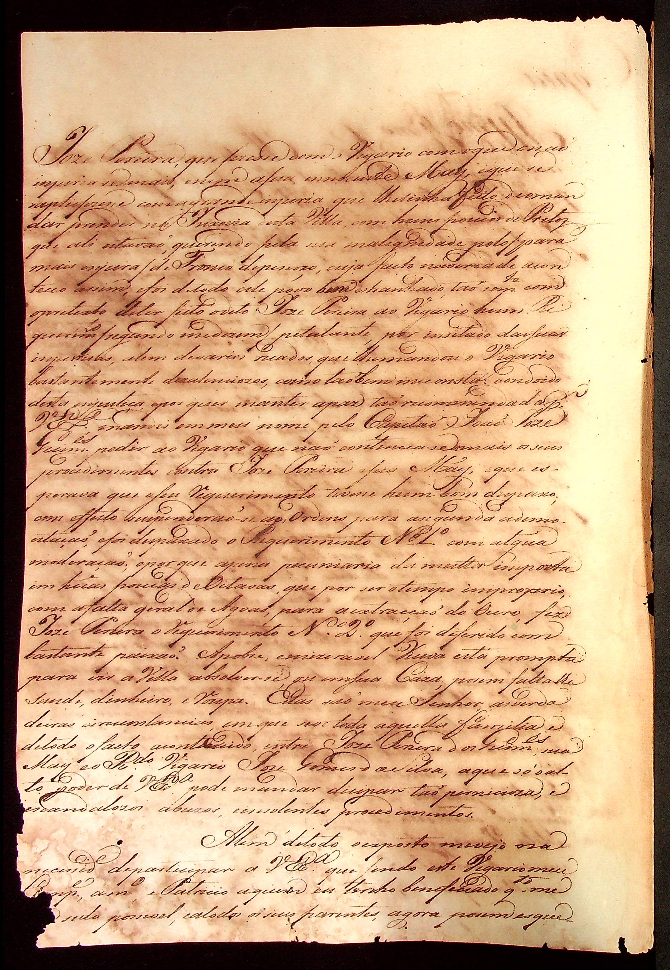 CARTA (cópia) do [Mestre de Campo] José Paes Falcão das Neves ao [Governador e Capitão-General da Capitania de Mato Grosso] João de Albuquerque de Mello Pereira e Cáceres.