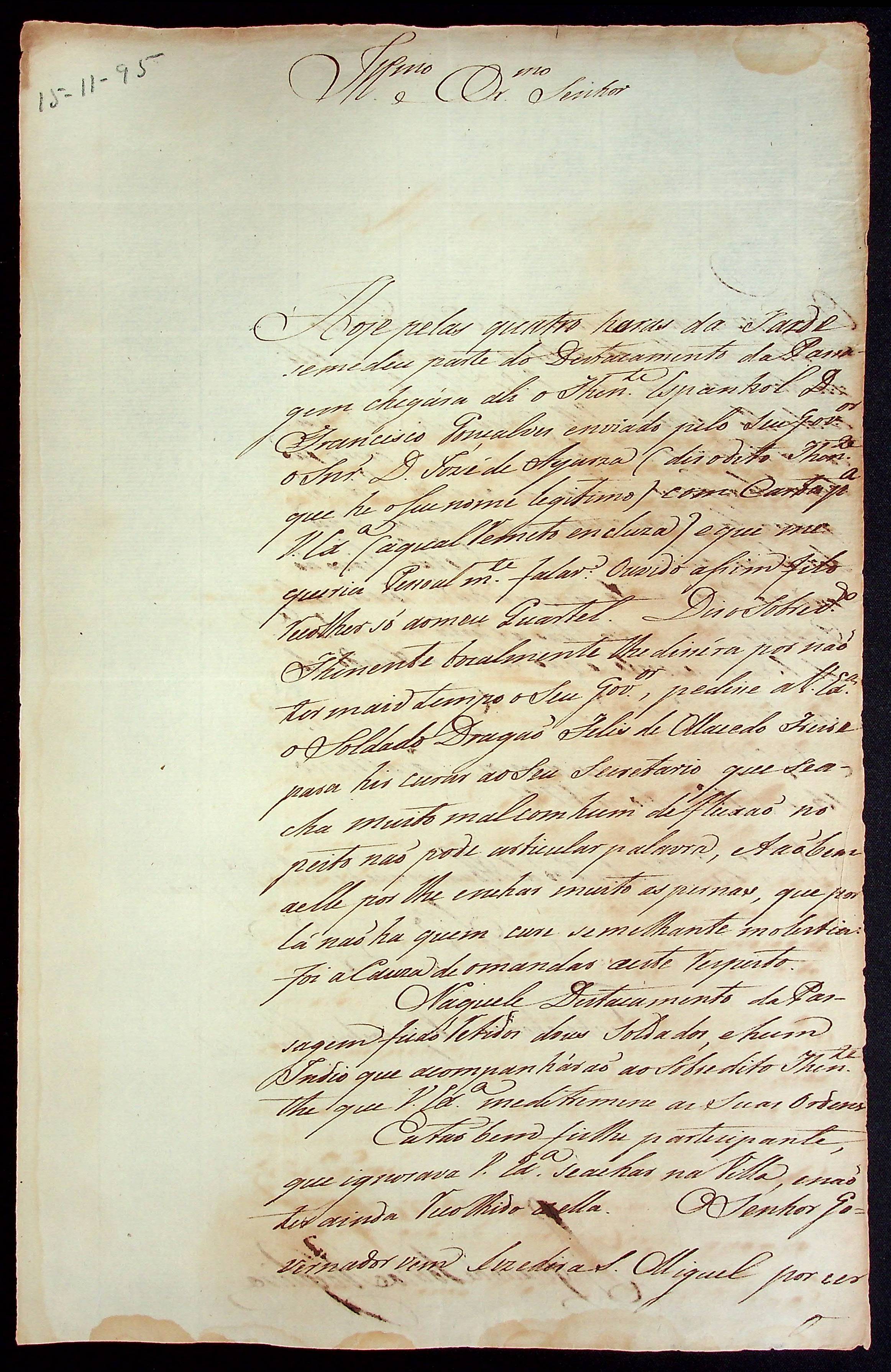 CARTA de Ignácio de Souza Nogueira ao [Governador e Capitão-General de Mato Grosso] João de Albuquerque de Mello Pereira e Cáceres.