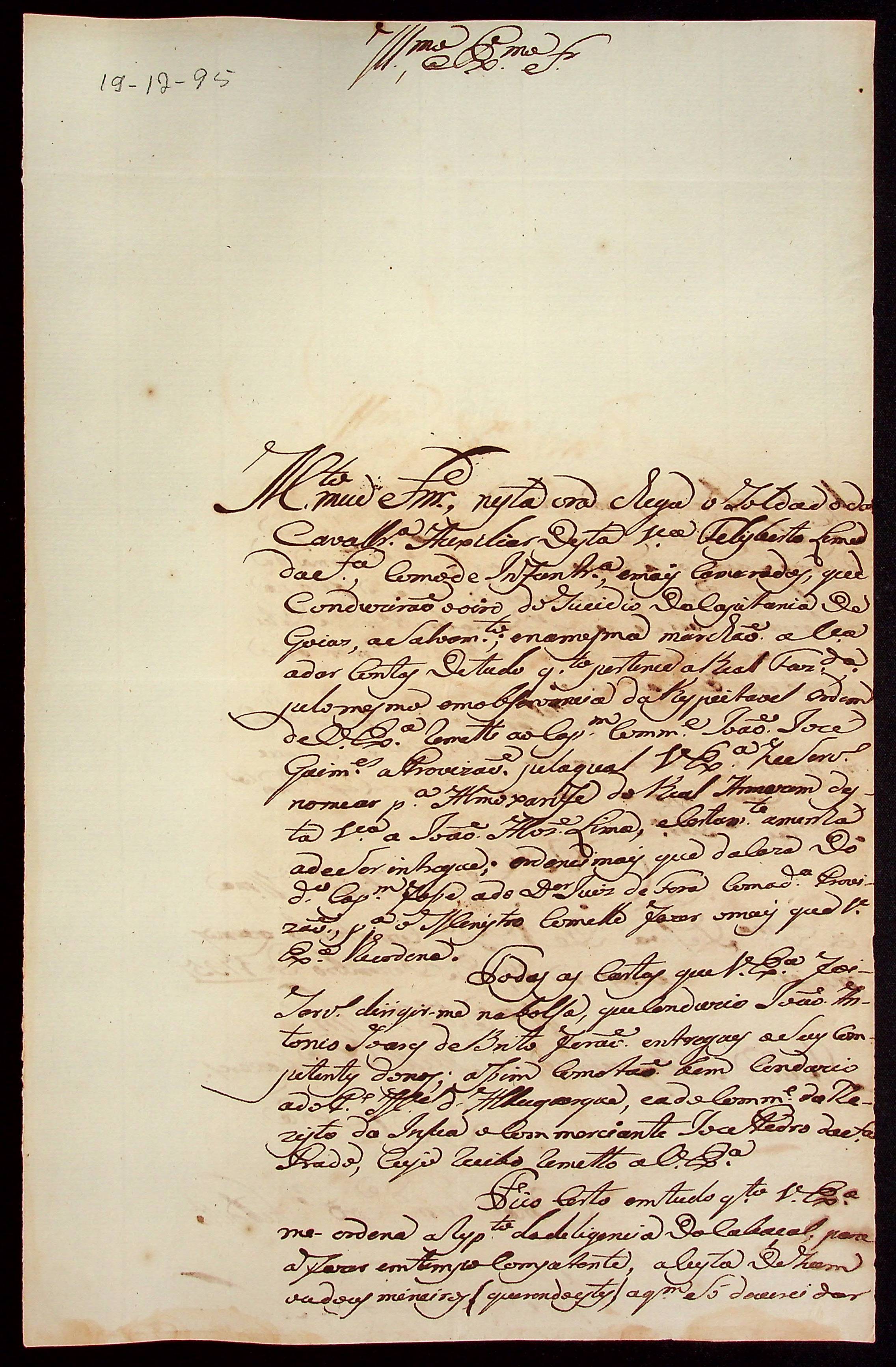 CARTA do [Mestre de Campo] José Paes Falcão das Neves ao [Governador e Capitão-General da Capitania de Mato Grosso] João de Albuquerque de Mello Pereira e Cáceres.