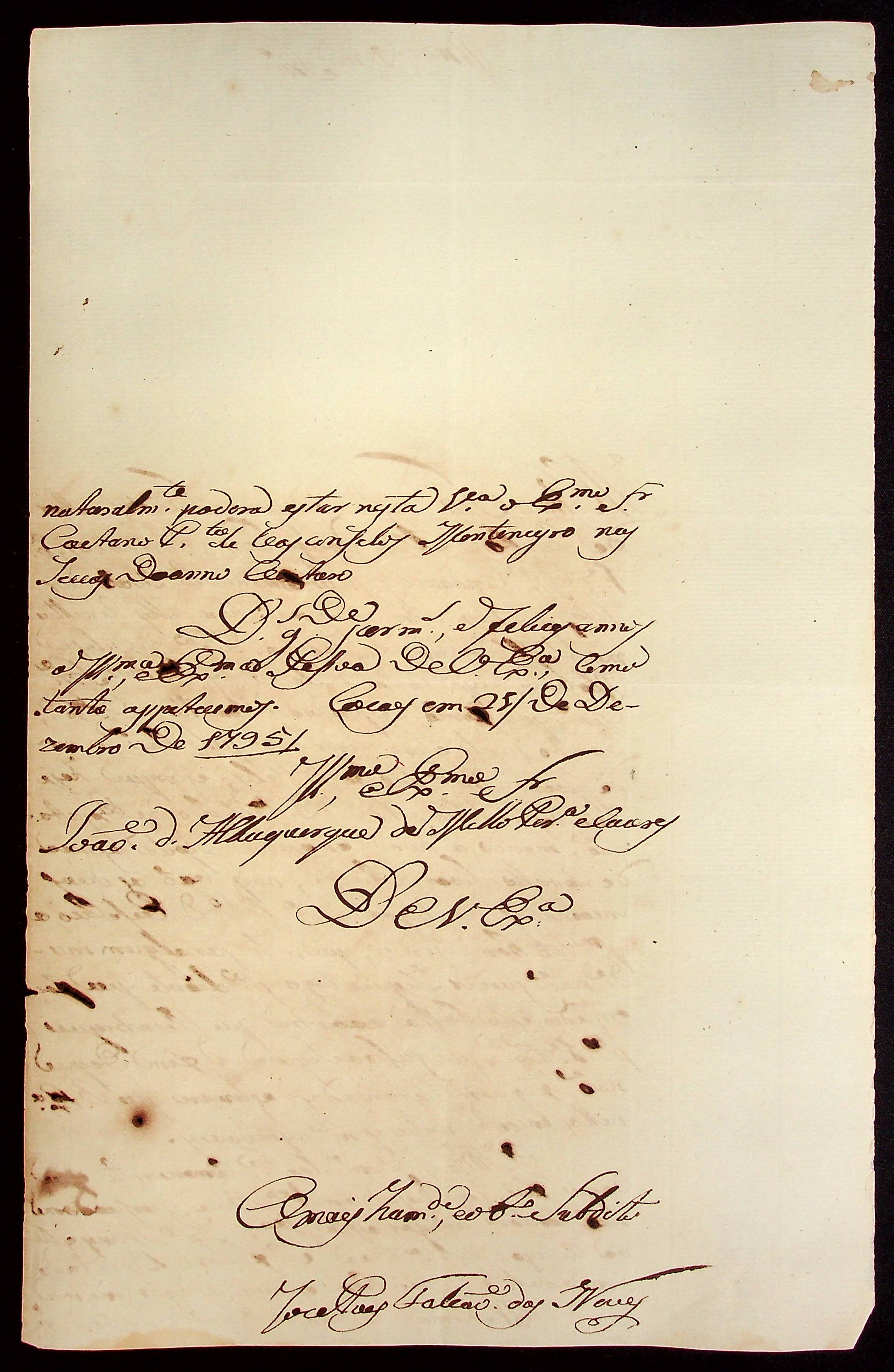 CARTA do [Mestre de Campo] José Paes Falcão das Neves ao [Governador e Capitão-General da Capitania de Mato Grosso] João de Albuquerque de Mello Pereira e Cáceres.