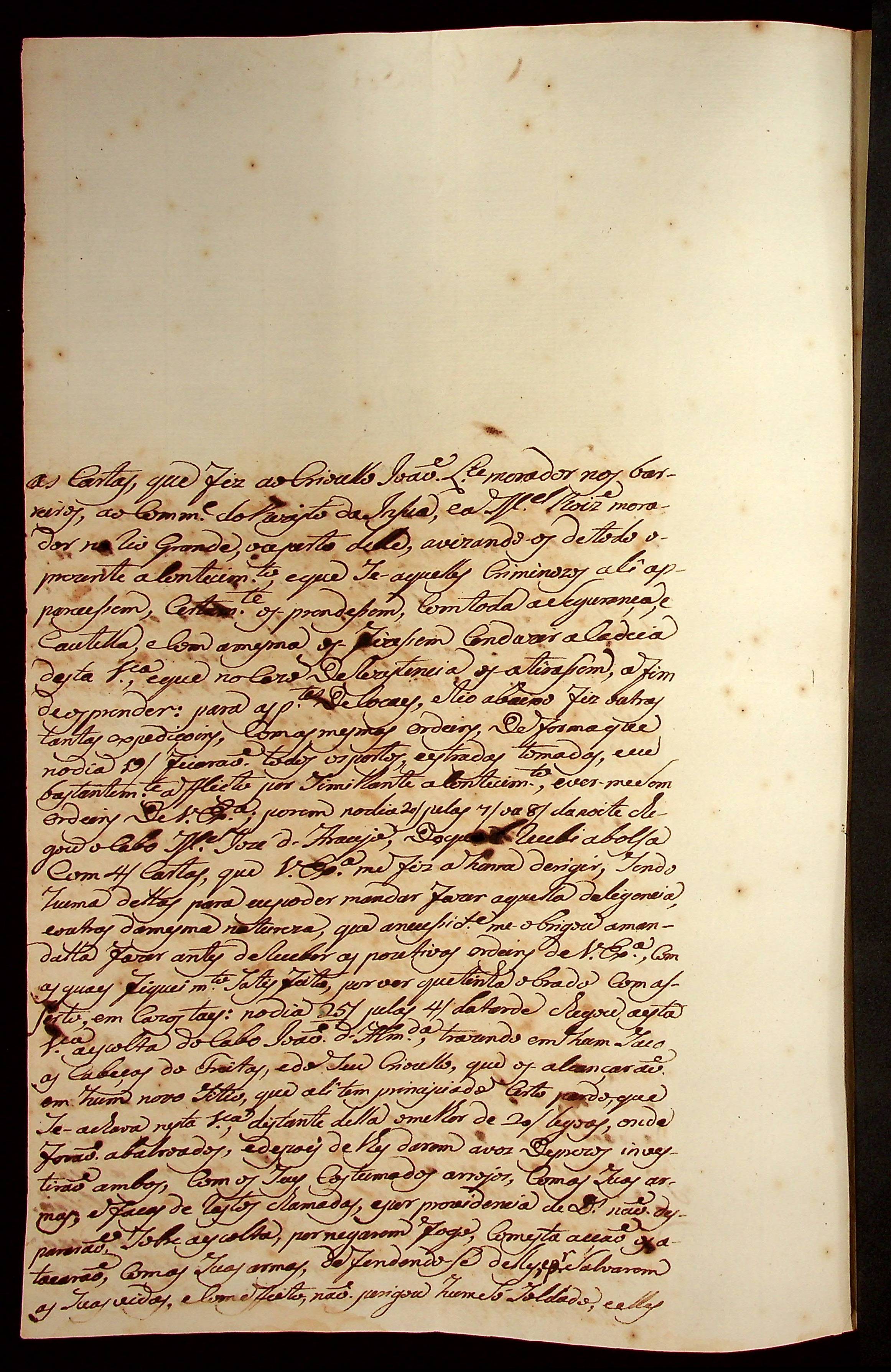 CARTA do [Mestre de Campo] José Paes Falcão das Neves ao [Governador e Capitão-General da Capitania de Mato Grosso] João de Albuquerque de Mello Pereira e Cáceres.