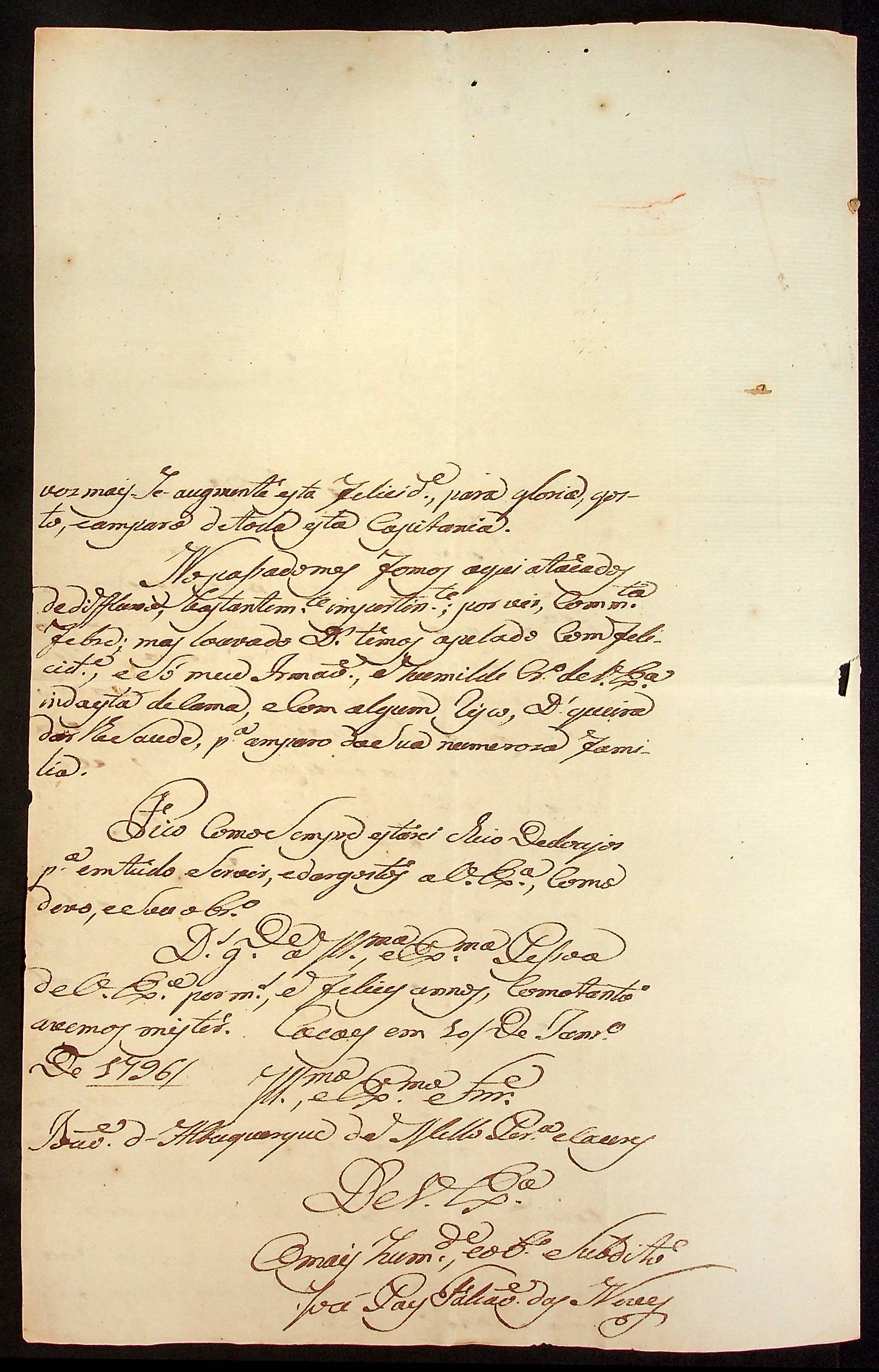 CARTA do [Mestre de Campo] José Paes Falcão das Neves ao [Governador e Capitão-General da Capitania de Mato Grosso] João de Albuquerque de Mello Pereira e Cáceres.