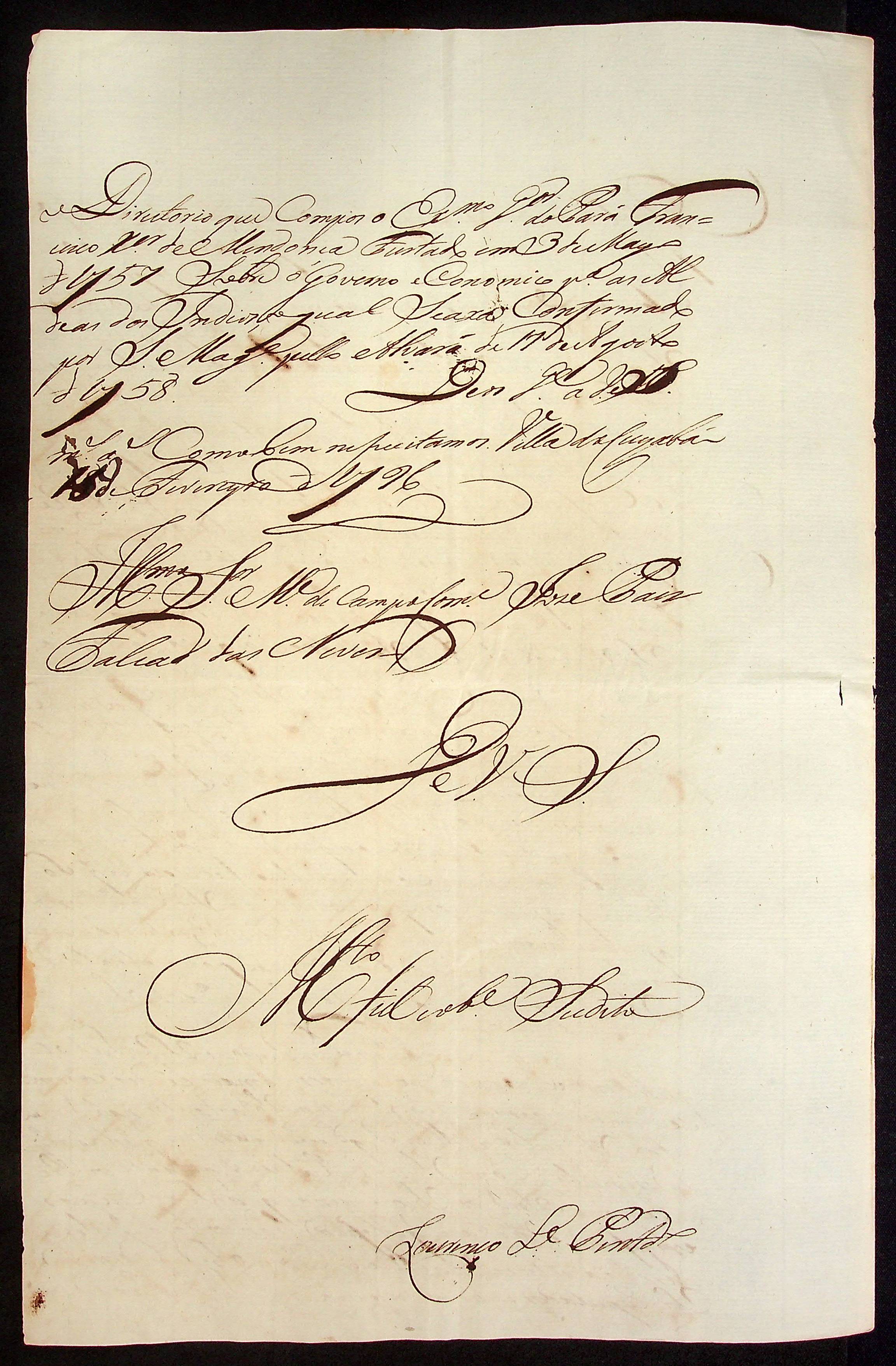 CARTA de Lourenço L. Pinto ao Mestre de Campo José Paes Falcão das Neves.
