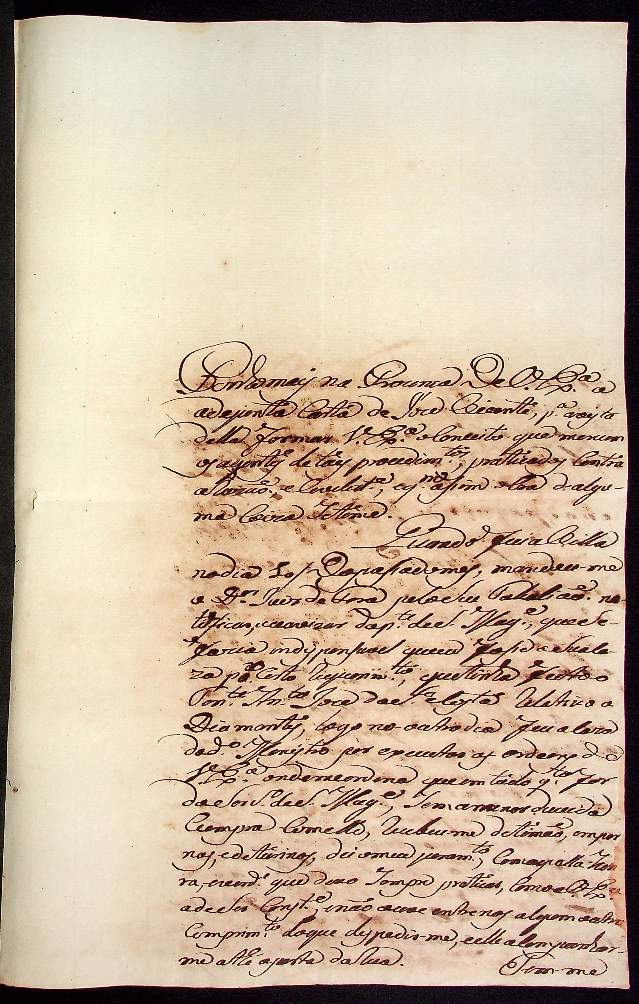CARTA do [Mestre de Campo] José Paes Falcão das Neves ao [Governador e Capitão-General da Capitania de Mato Grosso] João de Albuquerque de Mello Pereira e Cáceres.