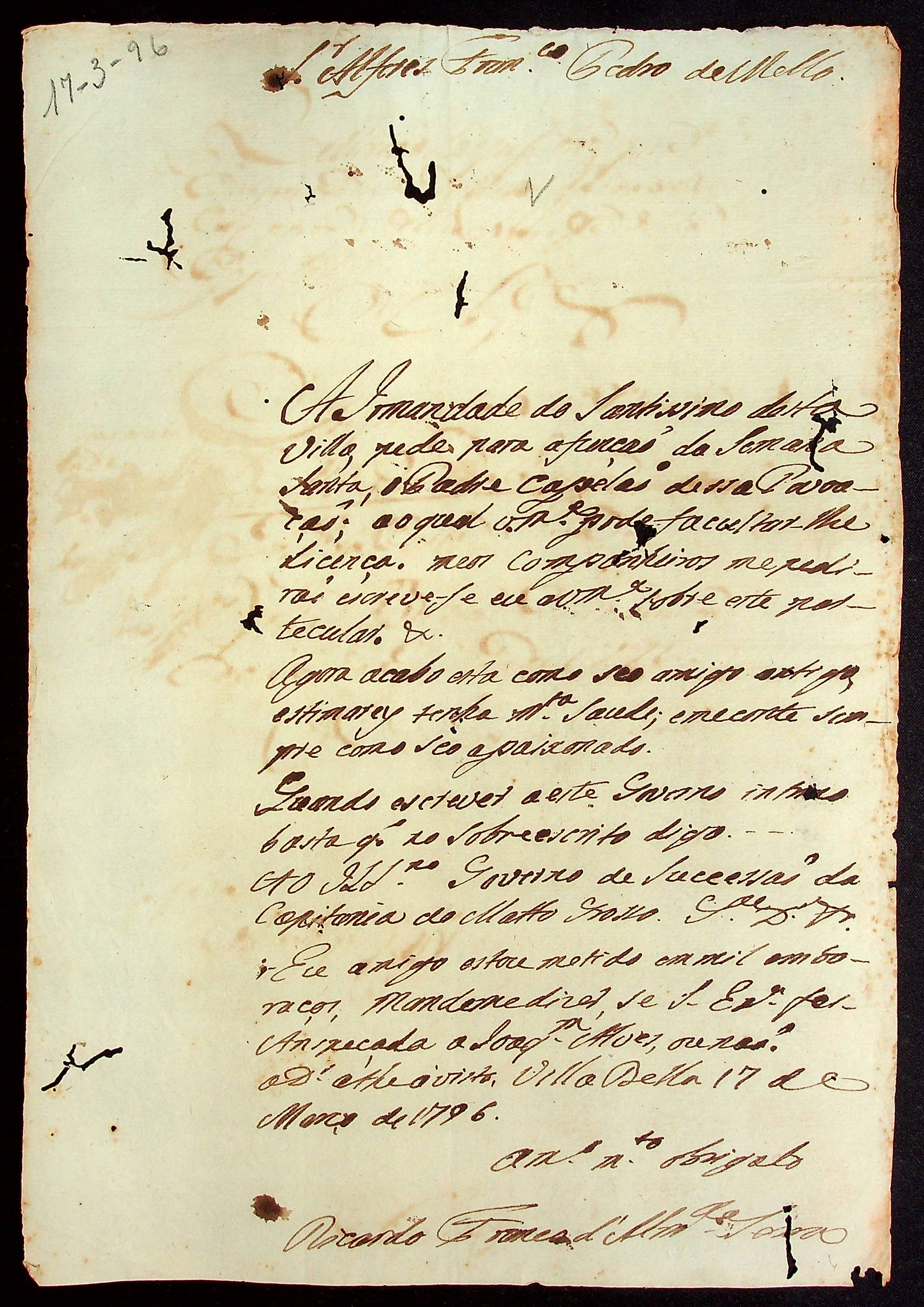CARTA de Ricardo Franco de Almeida Serra ao Alferes Francisco Pedro de Melo.