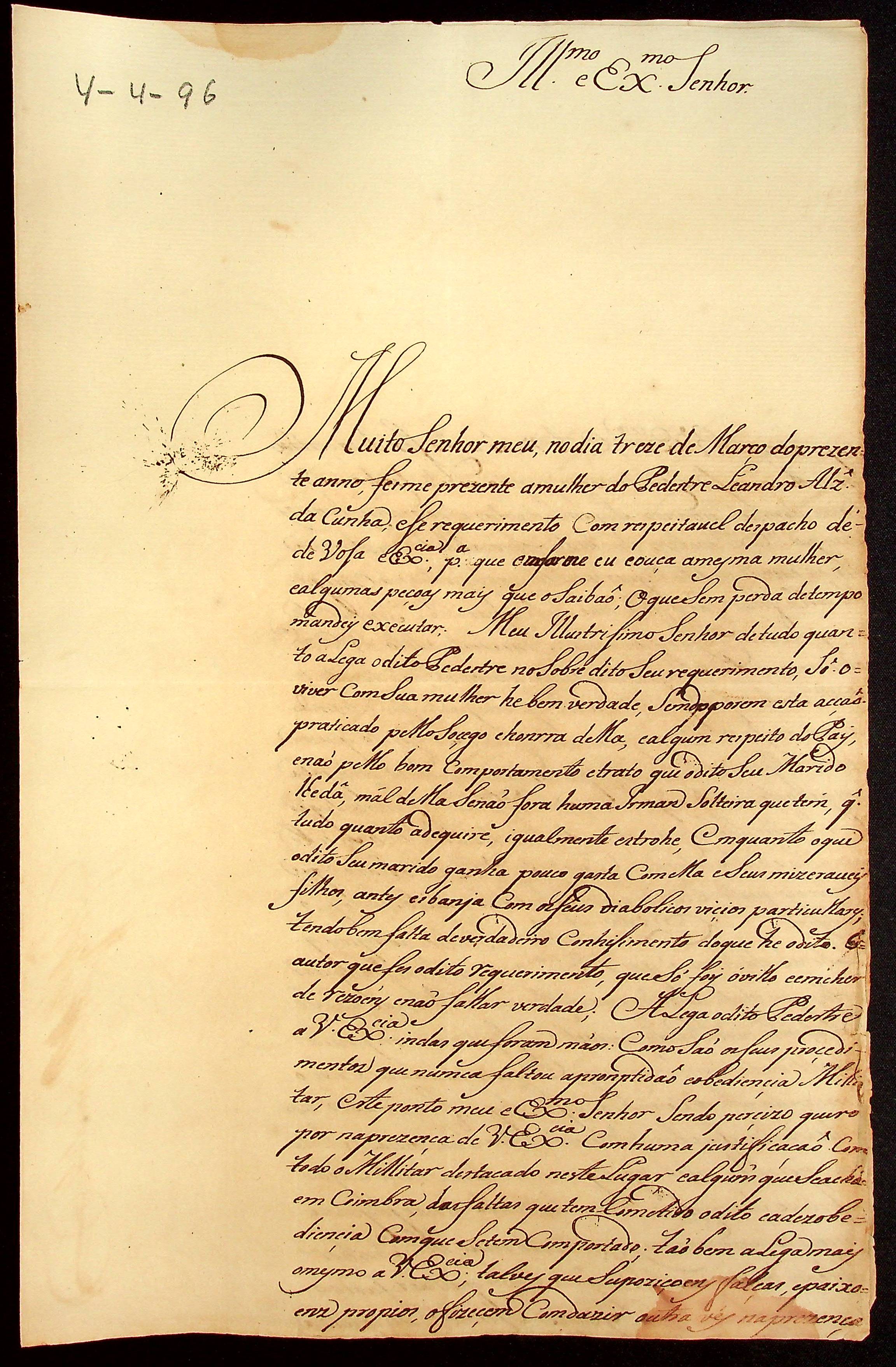 CARTA do [Mestre de Campo] Antônio José Pinto ao [Governador e Capitão-General de Mato Grosso] João de Albuquerque de Mello Pereira e Cáceres.