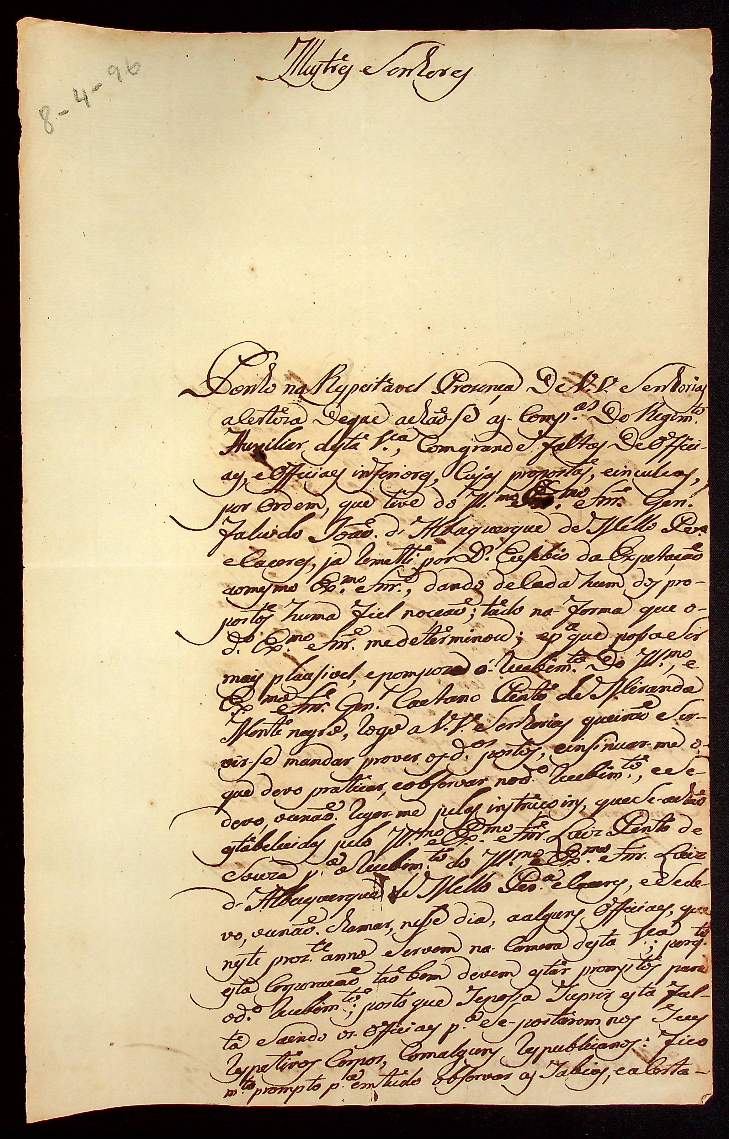 CARTA do Mestre de Campo e Comandante José Paes Falcão das Neves à [Primeira Junta Governativa da Capitania de Mato Grosso].
