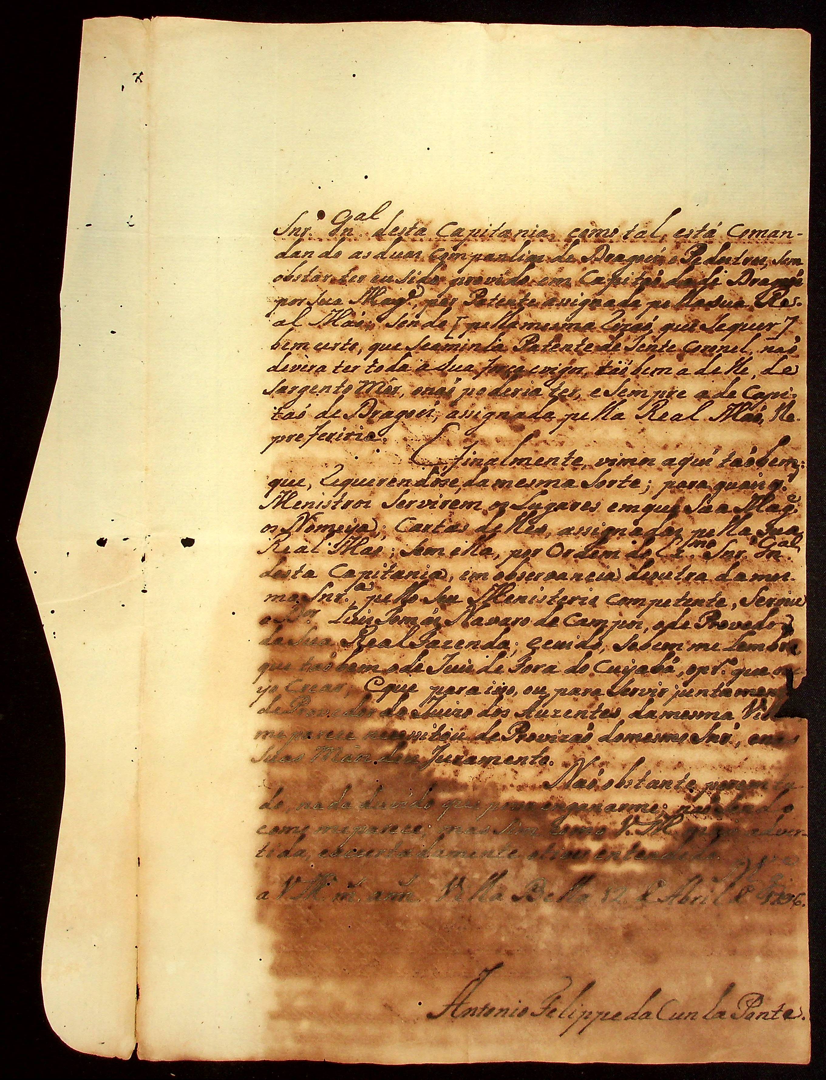 CARTA de Antônio Felipe da Cunha ao Tenente-Coronel Engenheiro Ricardo Franco de Almeida Serra.