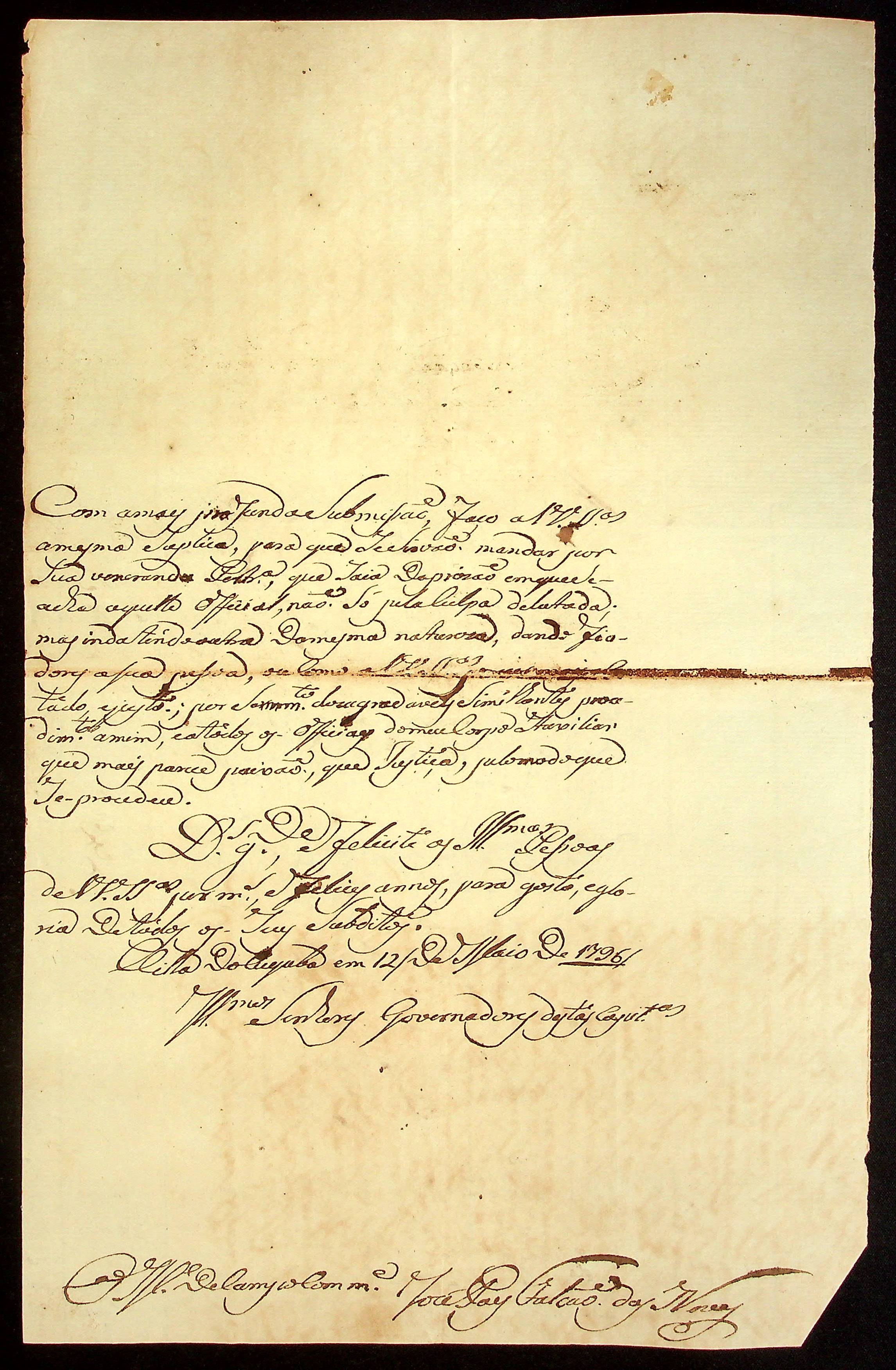 CARTA do Mestre de Campo José Paes Falcão das Neves à [Primeira Junta Governativa da Capitania de Mato Grosso].