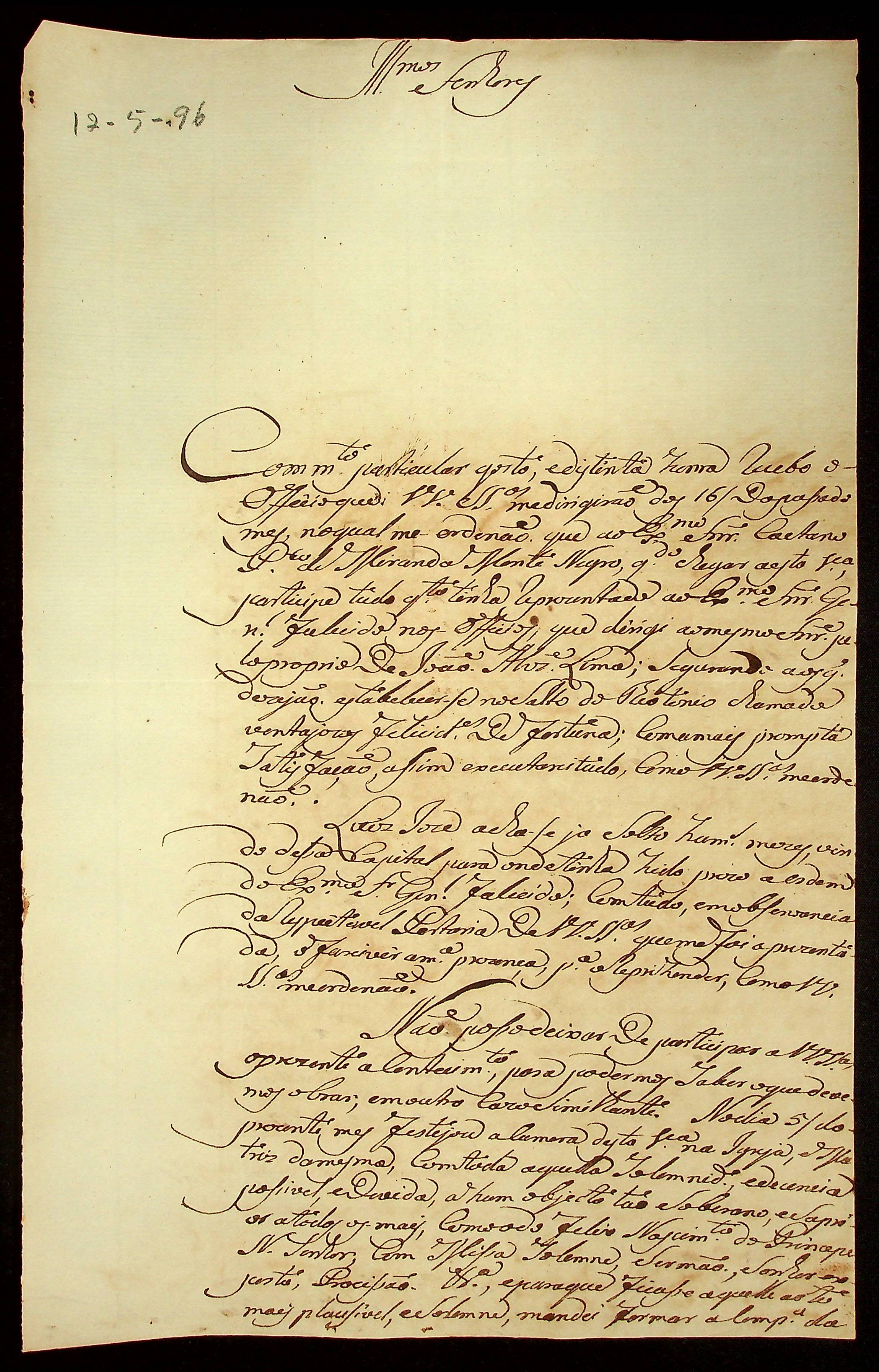 CARTA do Mestre de Campo e Comandante José Paes Falcão das Neves à [Primeira Junta Governativa da Capitania de Mato Grosso].
