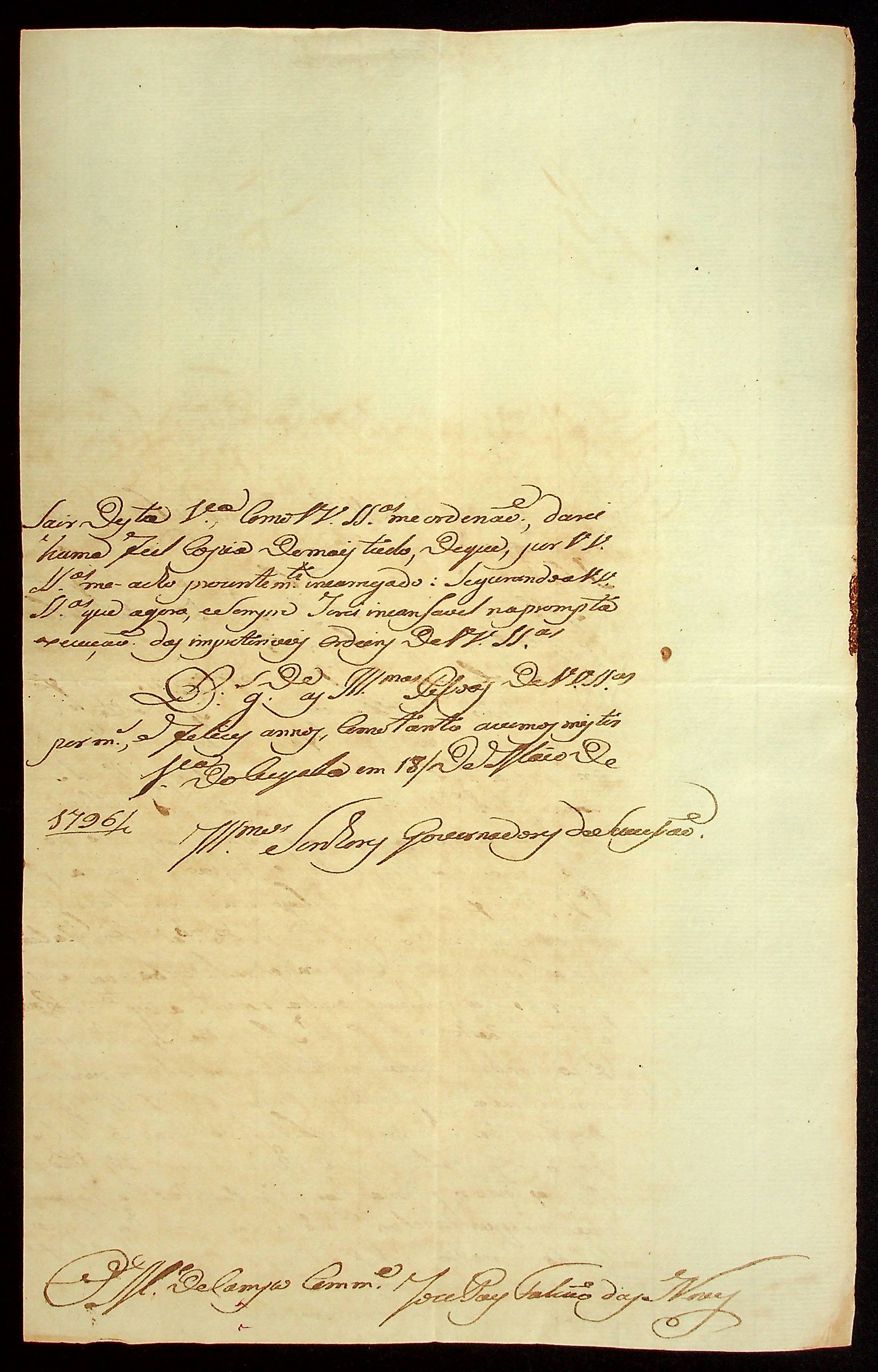 CARTA do Mestre de Campo e Comandante José Paes Falcão das Neves à [Primeira Junta Governativa da Capitania de Mato Grosso].