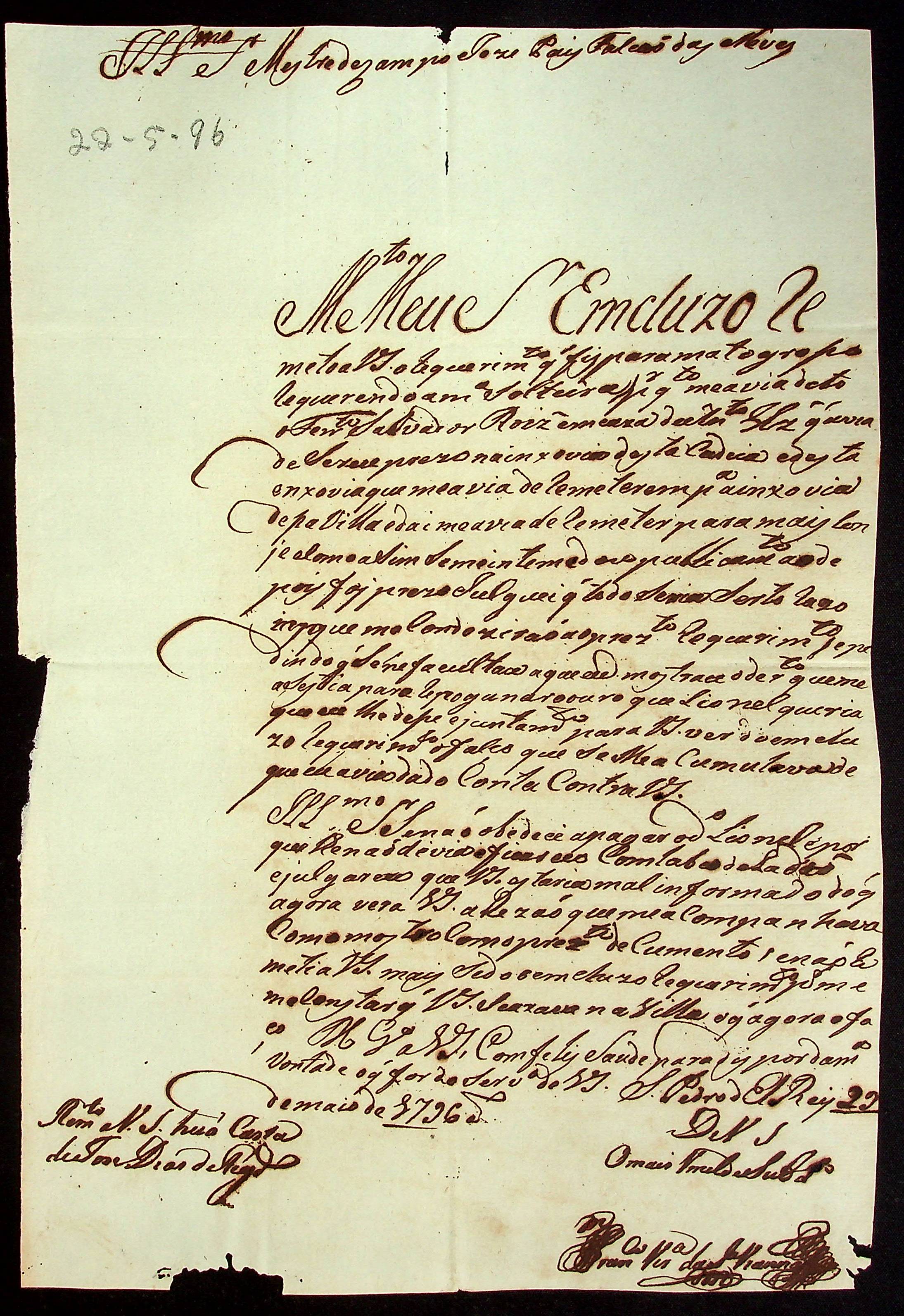 CARTA de Francisco Vieira da Silva Vianna ao Mestre de Campo José Paes Falcão das Neves.
