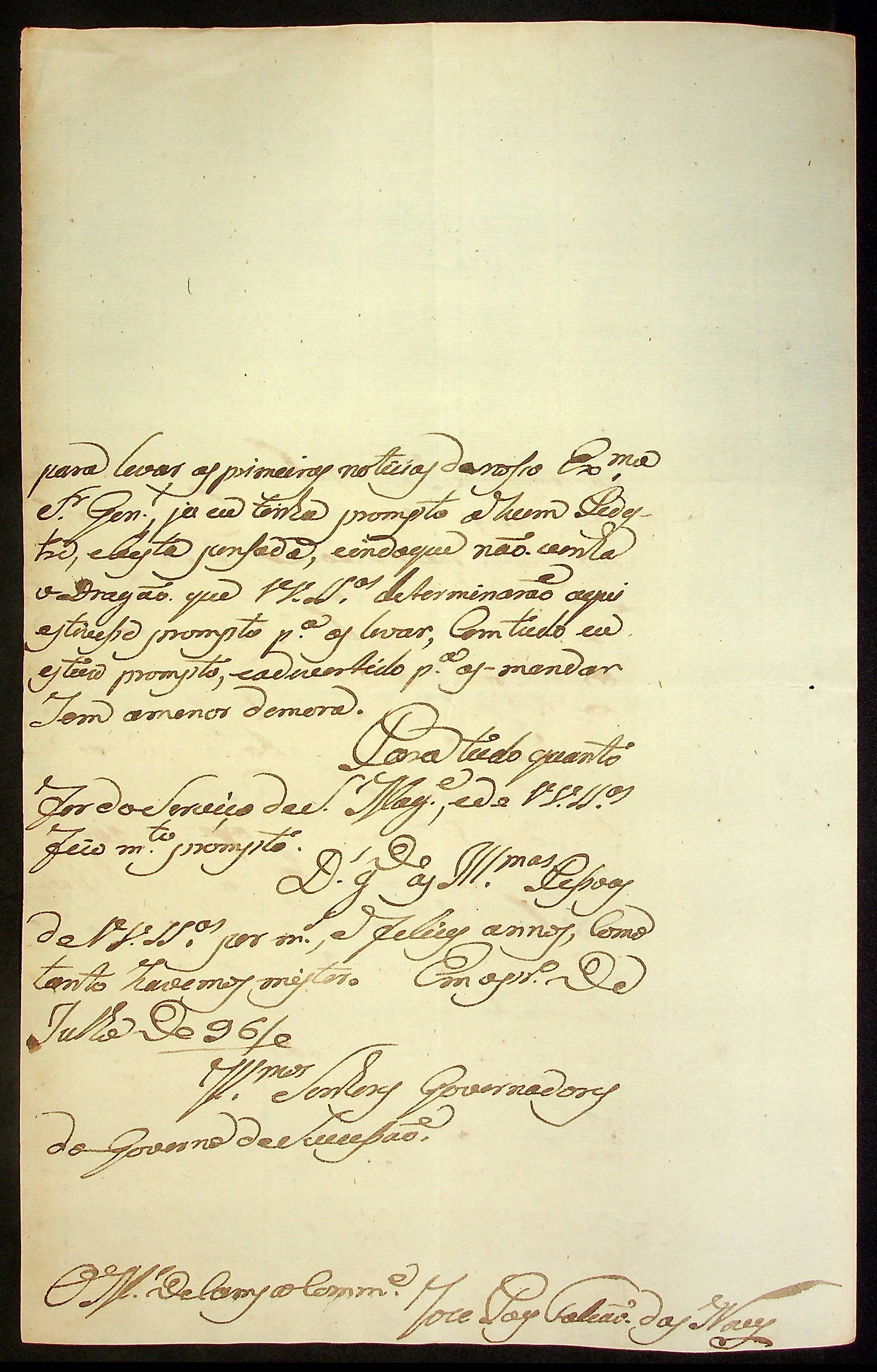 CARTA do Mestre de Campo e Comandante José Paes Falcão das Neves à [Primeira Junta Governativa da Capitania de Mato Grosso].