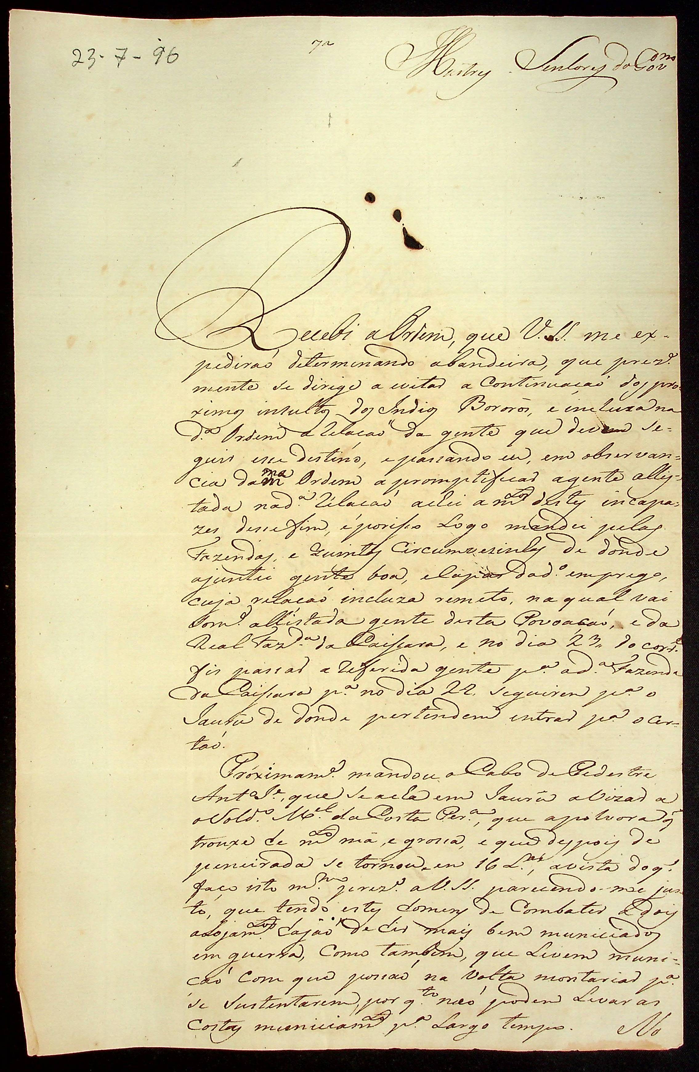 CARTA de João de Almeida Pereira à [Primeira Junta Governativa da Capitania de Mato Grosso].