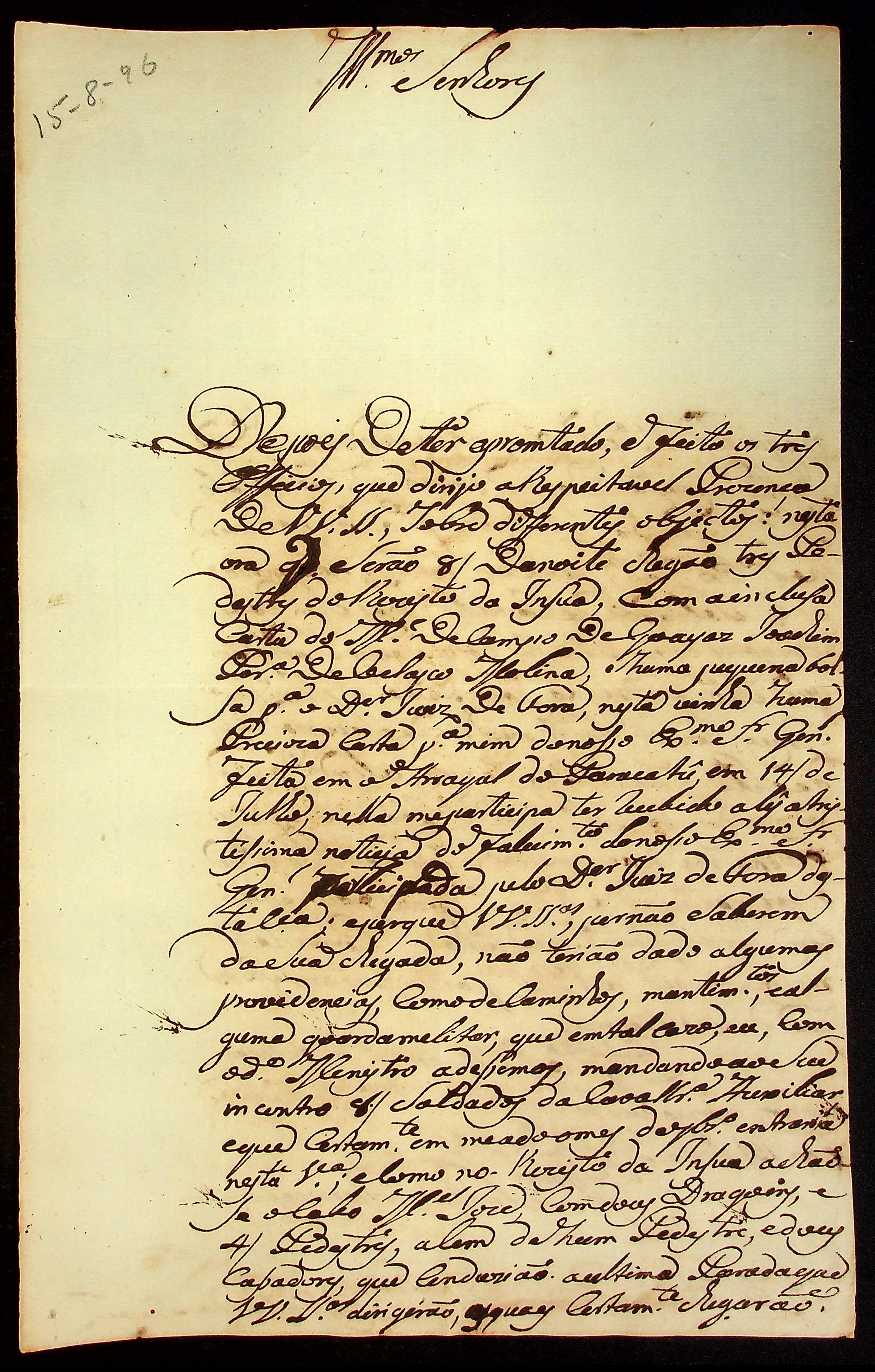 CARTA do Mestre de Campo e Comandante José Paes Falcão das Neves à [Primeira Junta Governativa da Capitania de Mato Grosso].
