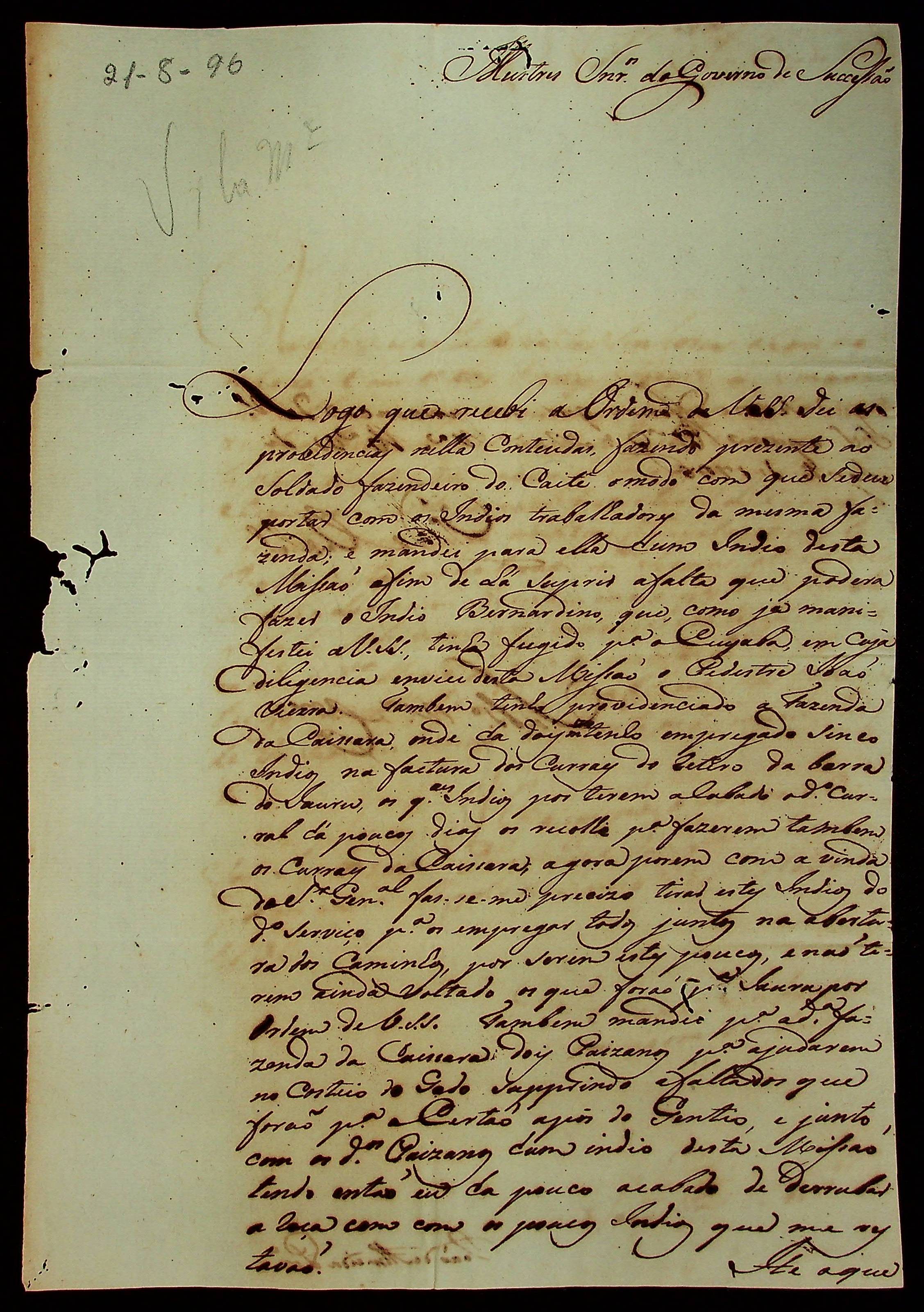 CARTA de João de Almeida Pereira à [Primeira Junta Governativa da Capitania de Mato Grosso].