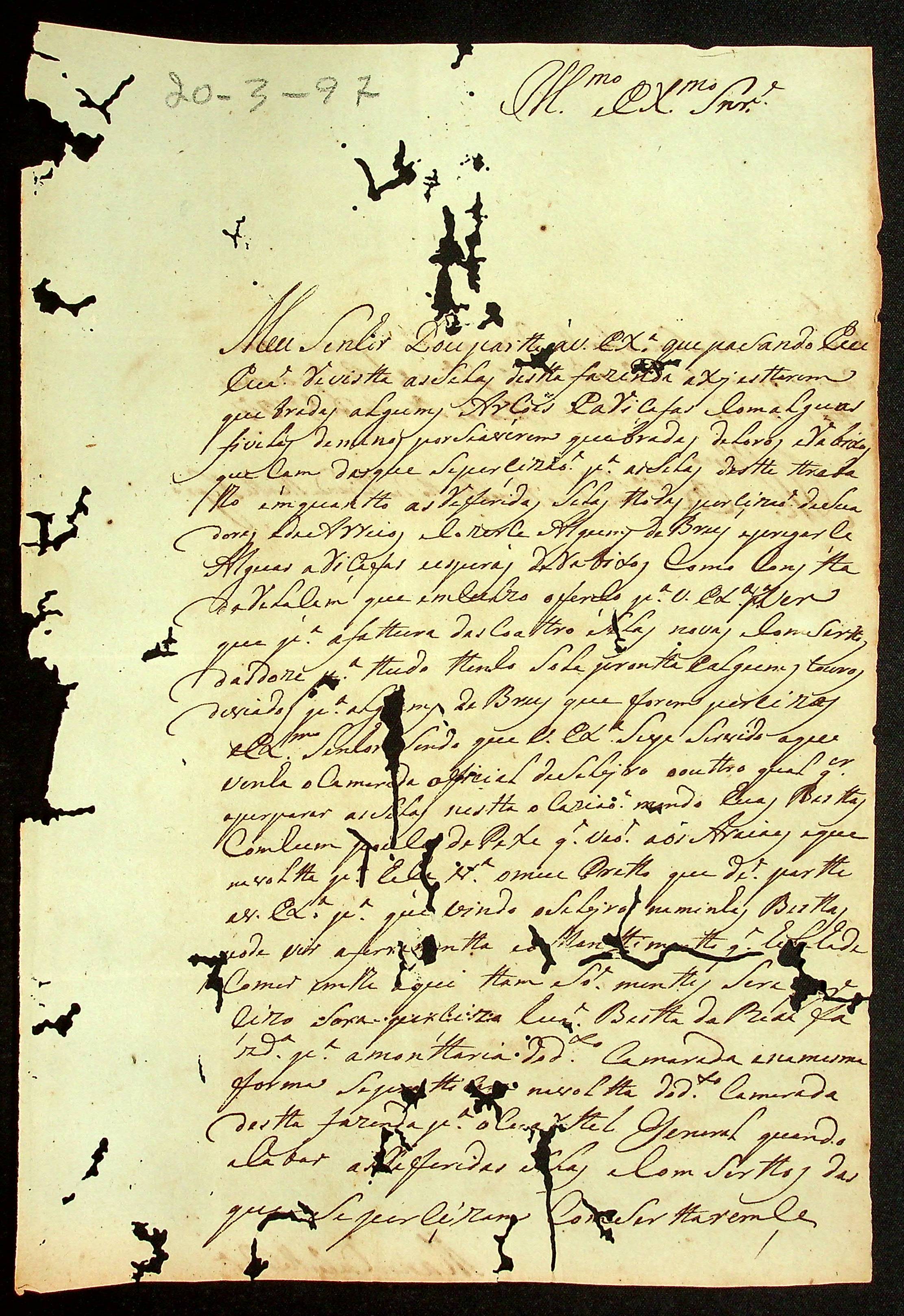 CARTA do Tenente Manoel da Costa Pereira ao [Governador e Capitão-General da Capitania de Mato Grosso] Caetano Pinto de Miranda e Montenegro.