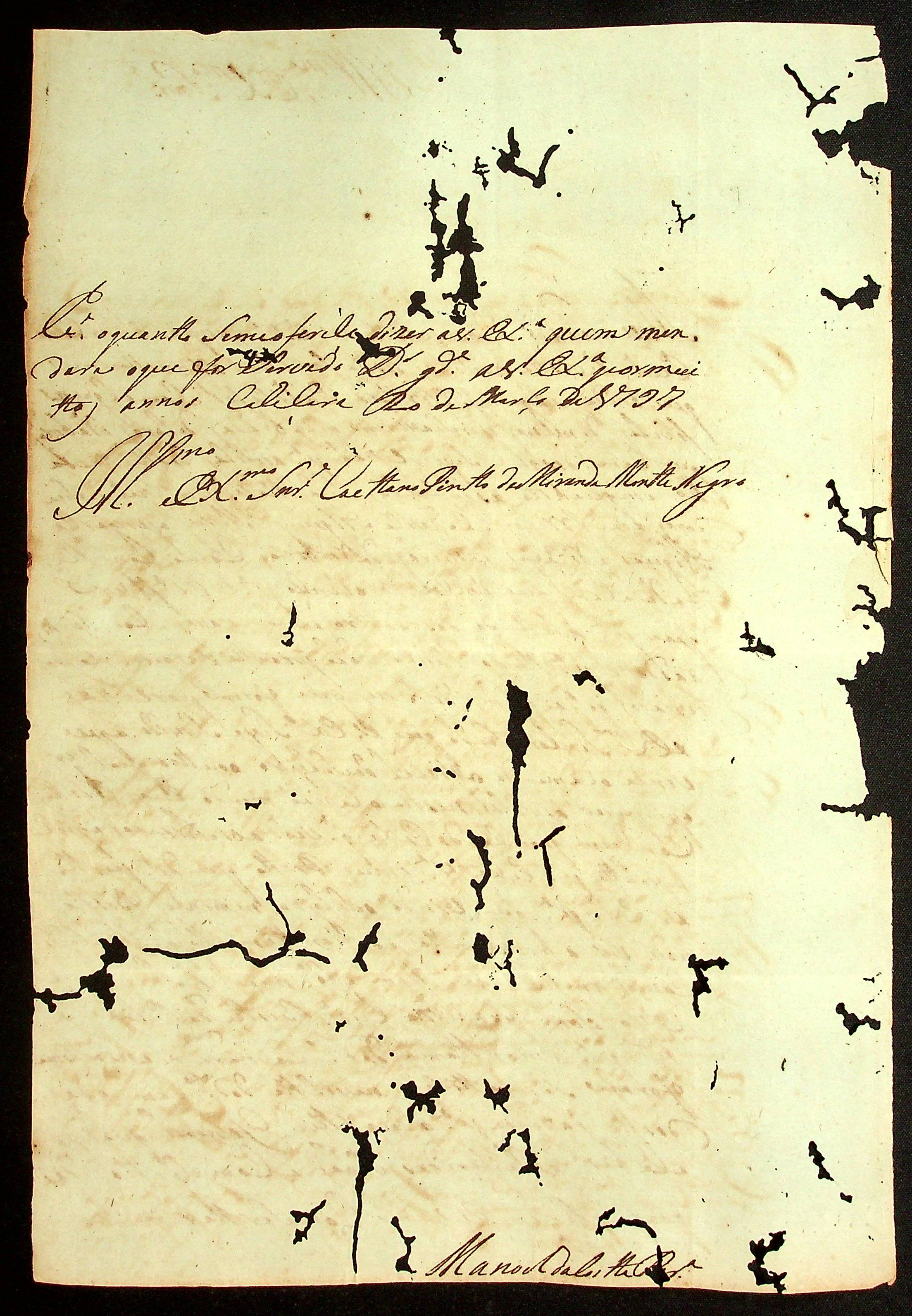 CARTA do Tenente Manoel da Costa Pereira ao [Governador e Capitão-General da Capitania de Mato Grosso] Caetano Pinto de Miranda e Montenegro.