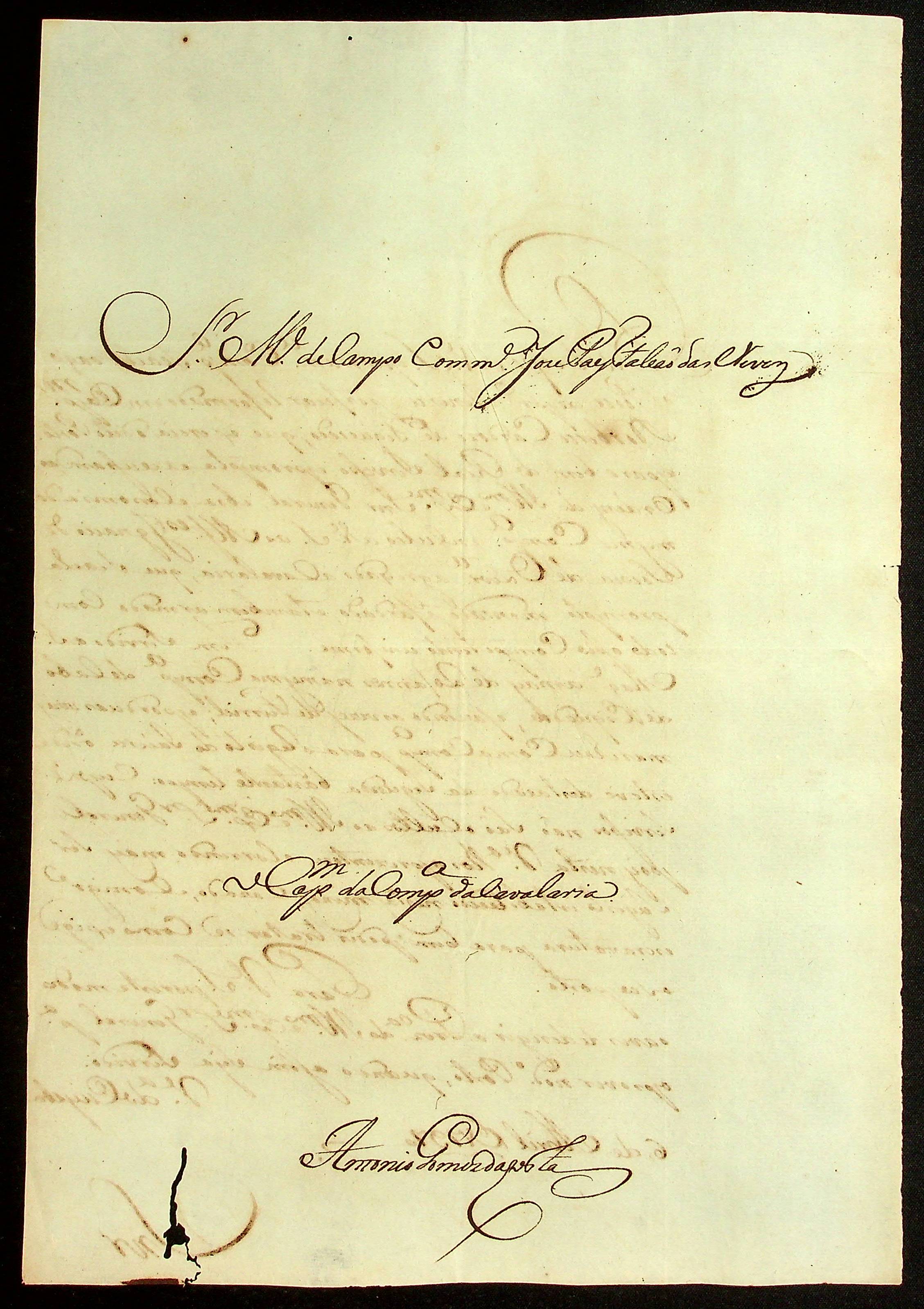 CARTA do Capitão da Companhia de Cavalaria Antônio Gomes da Costa ao Mestre de Campo Comandante José Paes Falcão das Neves.