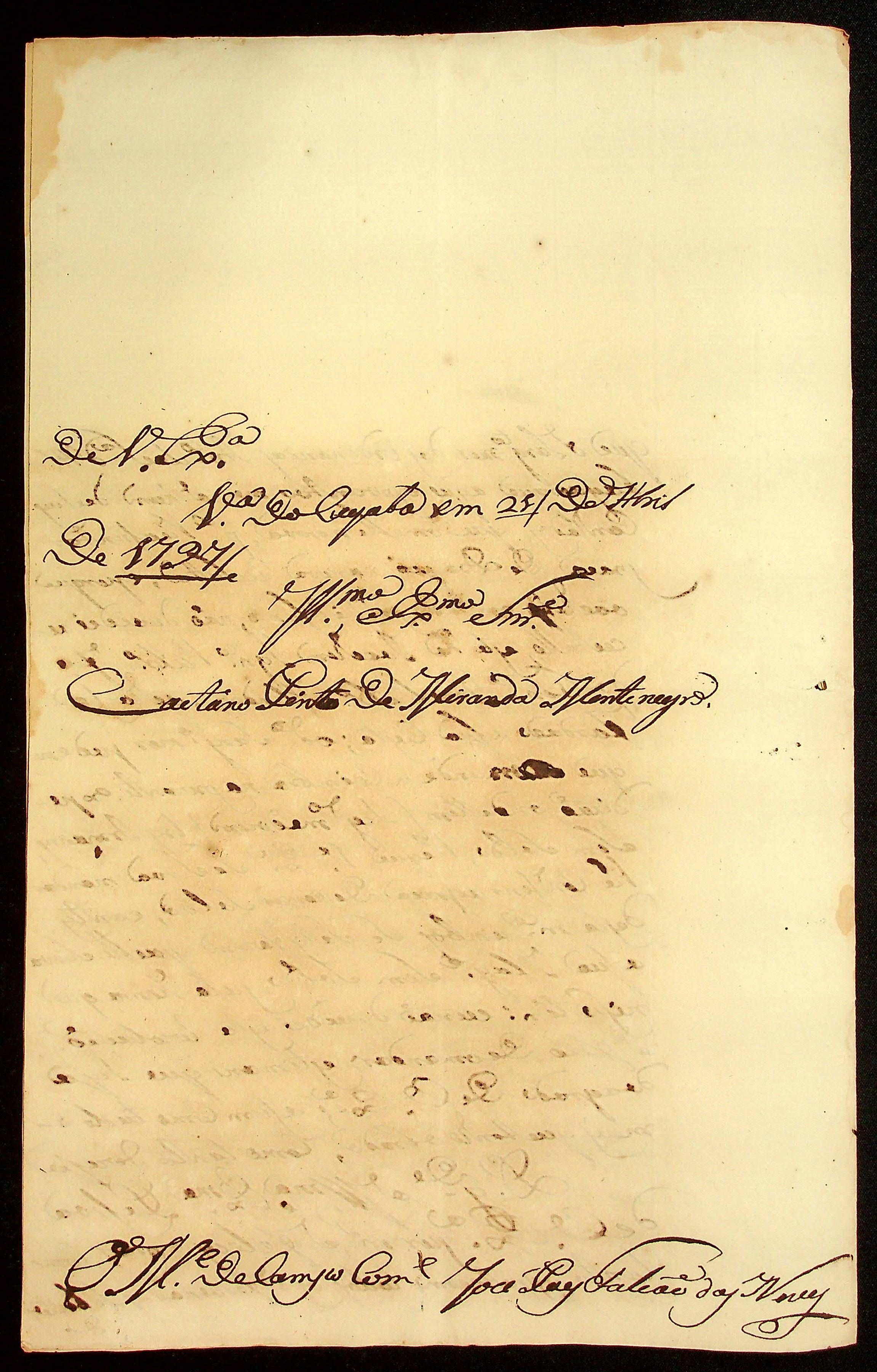 CARTA do Mestre de Campo José Paes Falcão das Neves ao [Governador e Capitão-General da Capitania de Mato Grosso] Caetano Pinto de Miranda e Montenegro.
