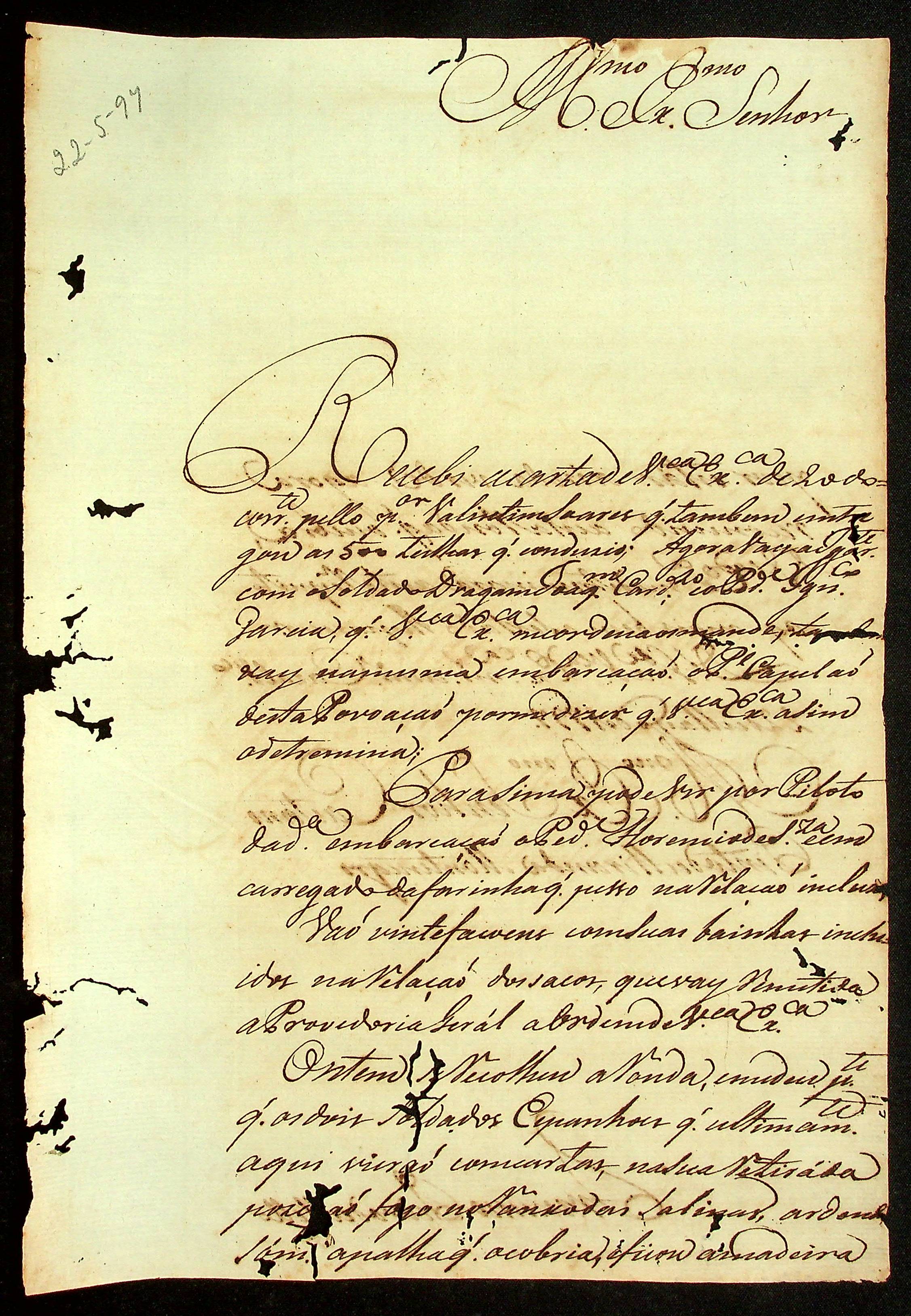 CARTA do [Comandante] Francisco Pedro de Melo ao [Governador e Capitão-General da Capitania de Mato Grosso] Caetano Pinto de Miranda e Montenegro.