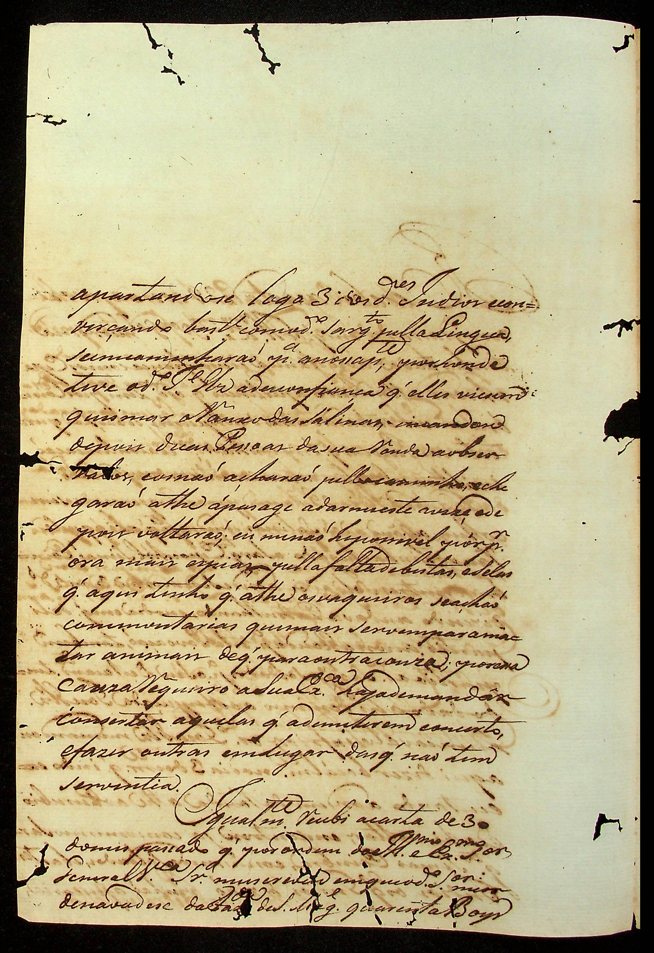 CARTA do [Comandante] Francisco Pedro de Melo ao [Governador e Capitão-General da Capitania de Mato Grosso] Caetano Pinto de Miranda e Montenegro.