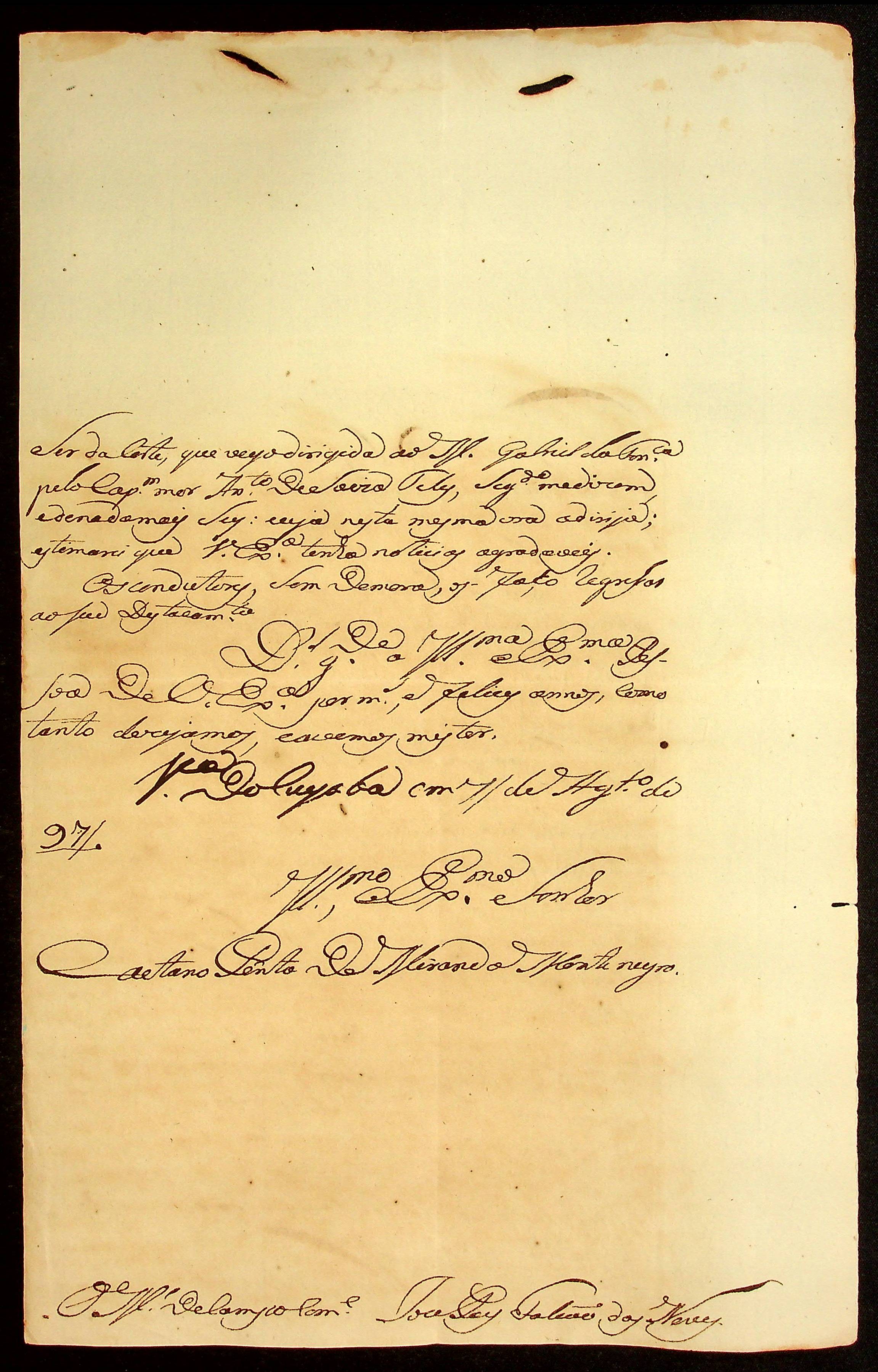 CARTA do Mestre de Campo José Paes Falcão das Neves ao [Governador e Capitão-General da Capitania de Mato Grosso] Caetano Pinto de Miranda e Montenegro.