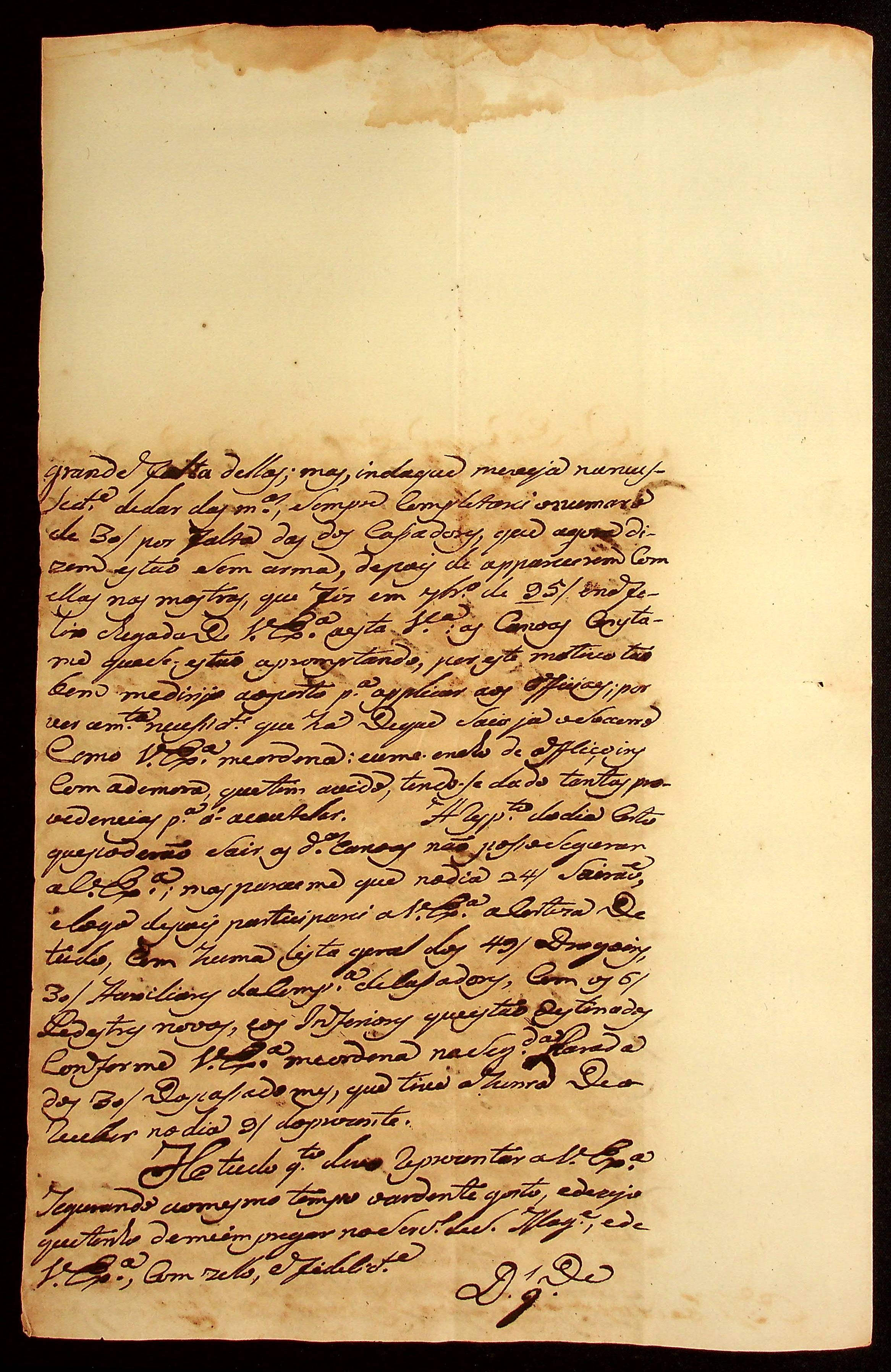 CARTA do Mestre de Campo José Paes Falcão das Neves ao [Governador e Capitão-General da Capitania de Mato Grosso] Caetano Pinto de Miranda e Montenegro.
