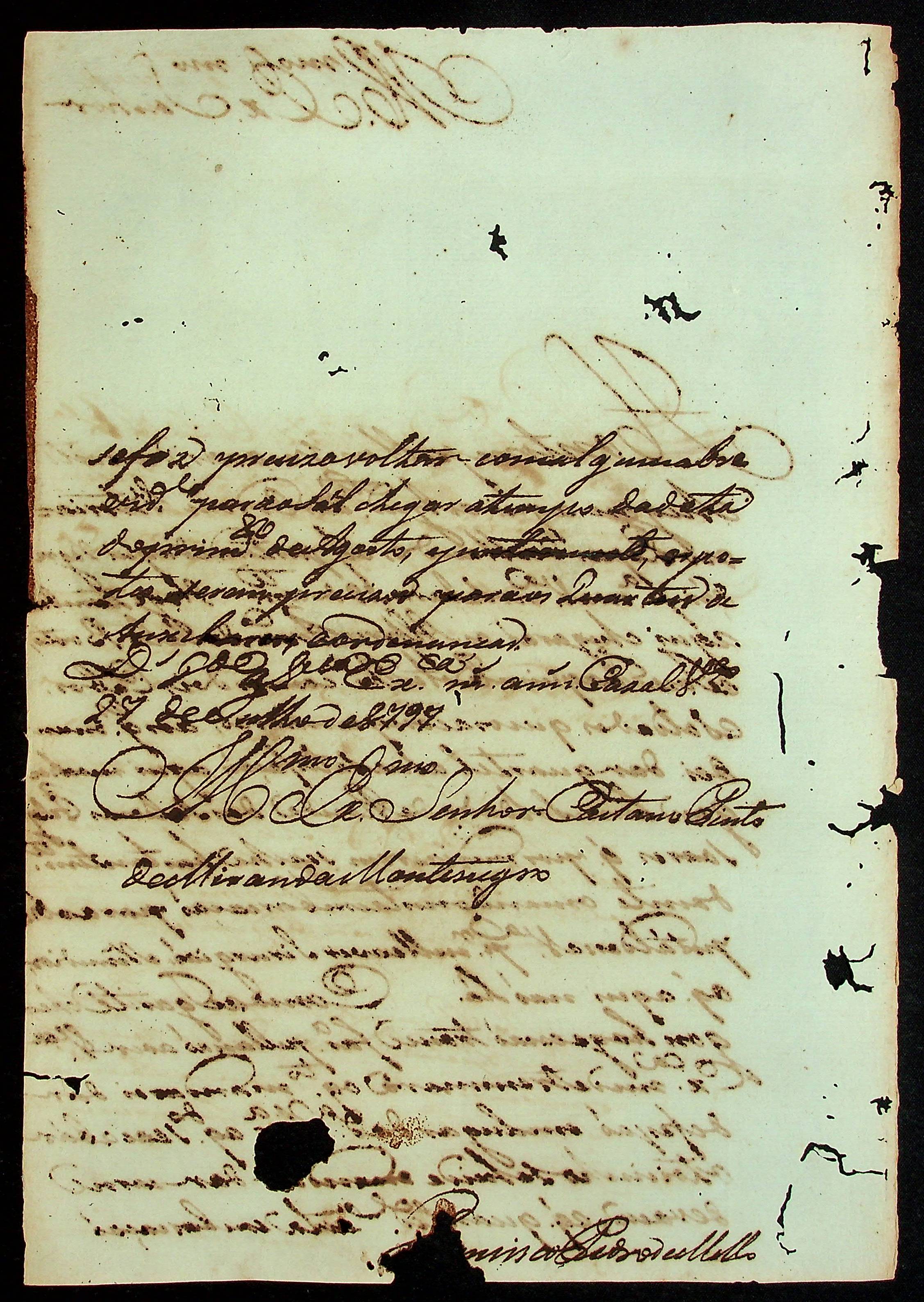 CARTA do [Comandante] Francisco Pedro de Melo ao [Governador e Capitão-General da Capitania de Mato Grosso Caetano] Pinto de Miranda e Montenegro.