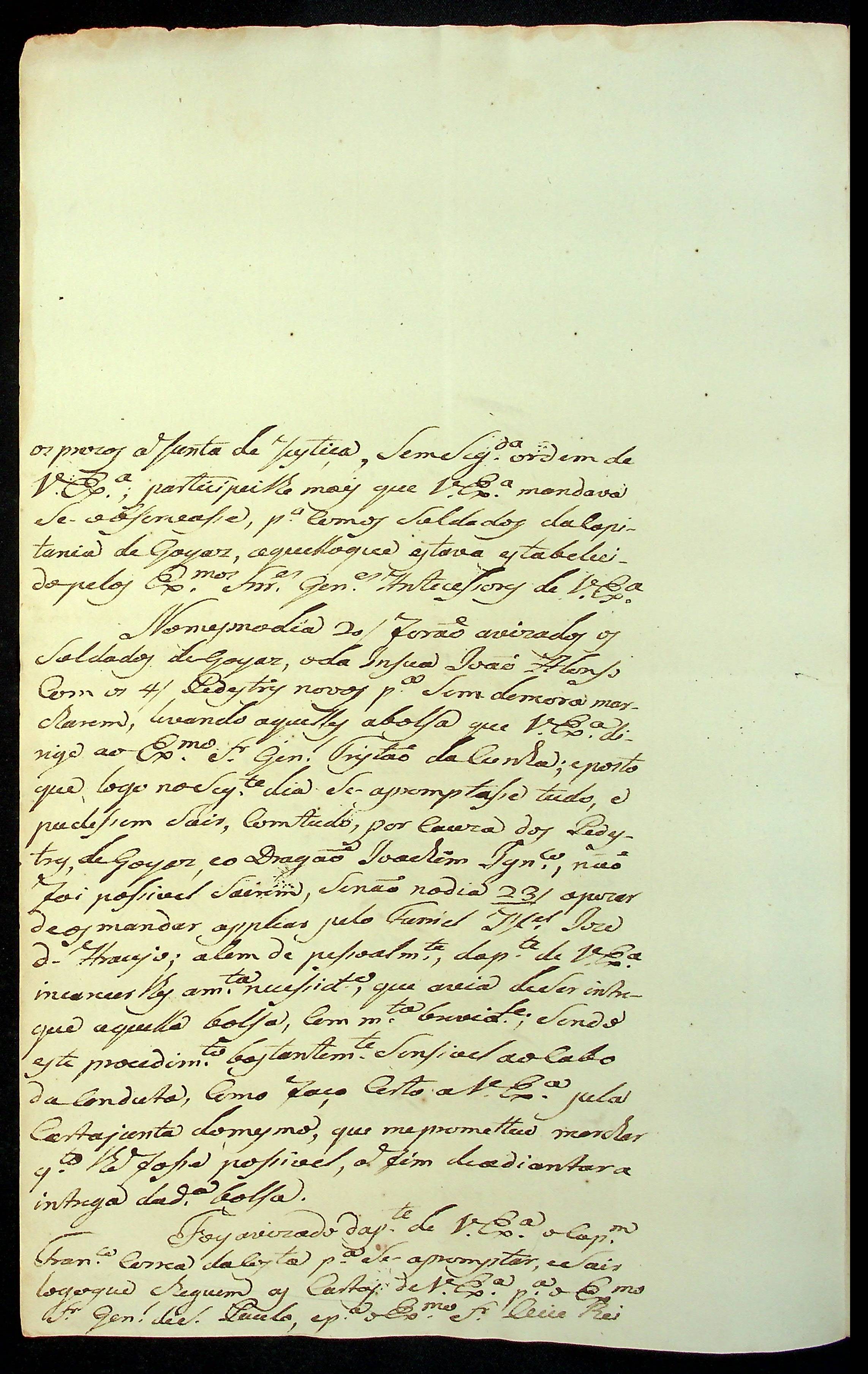 CARTA do Mestre de Campo José Paes Falcão das Neves ao [Governador e Capitão-General da Capitania de Mato Grosso] Caetano Pinto de Miranda e Montenegro.