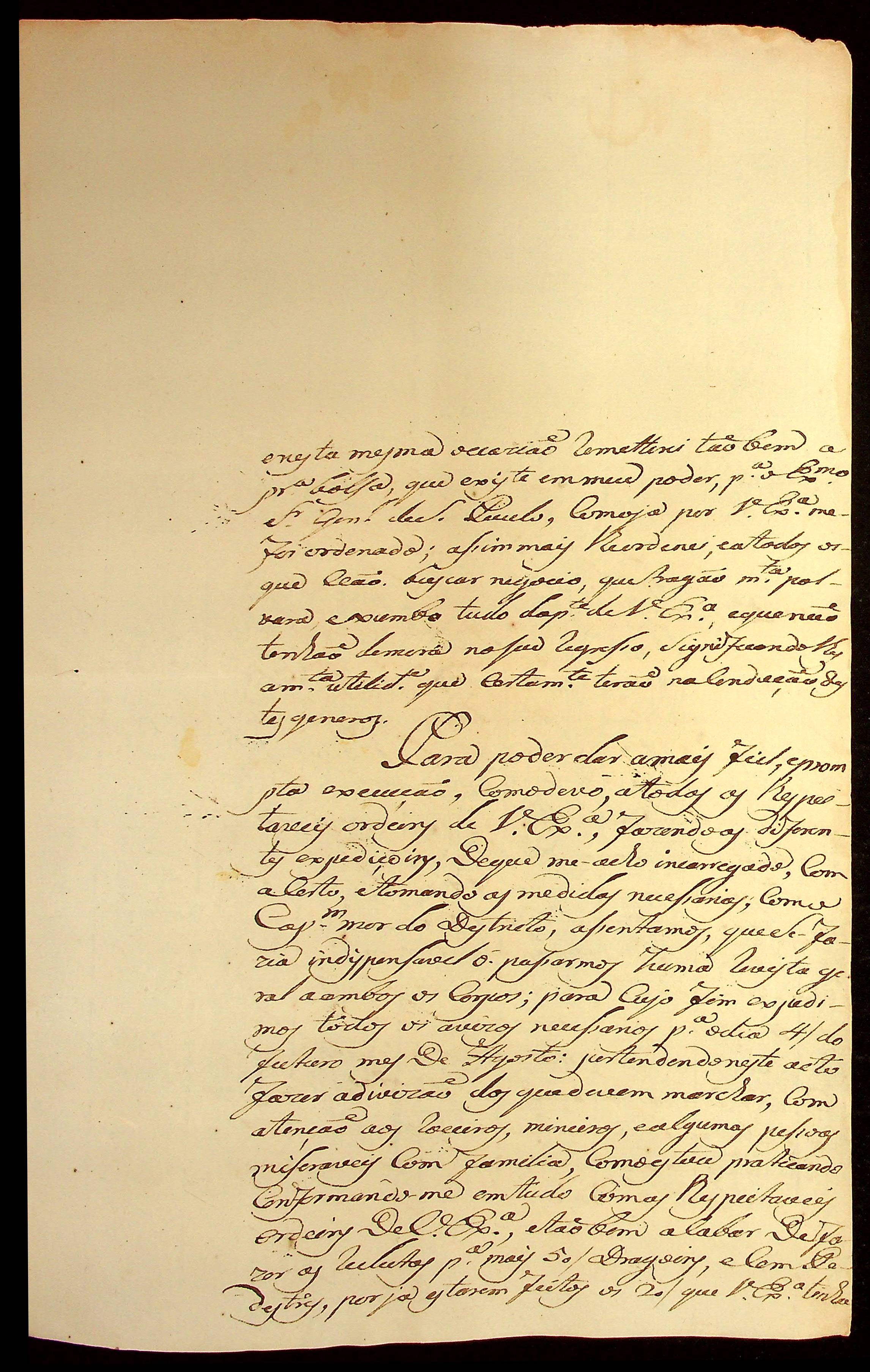 CARTA do Mestre de Campo José Paes Falcão das Neves ao [Governador e Capitão-General da Capitania de Mato Grosso] Caetano Pinto de Miranda e Montenegro.