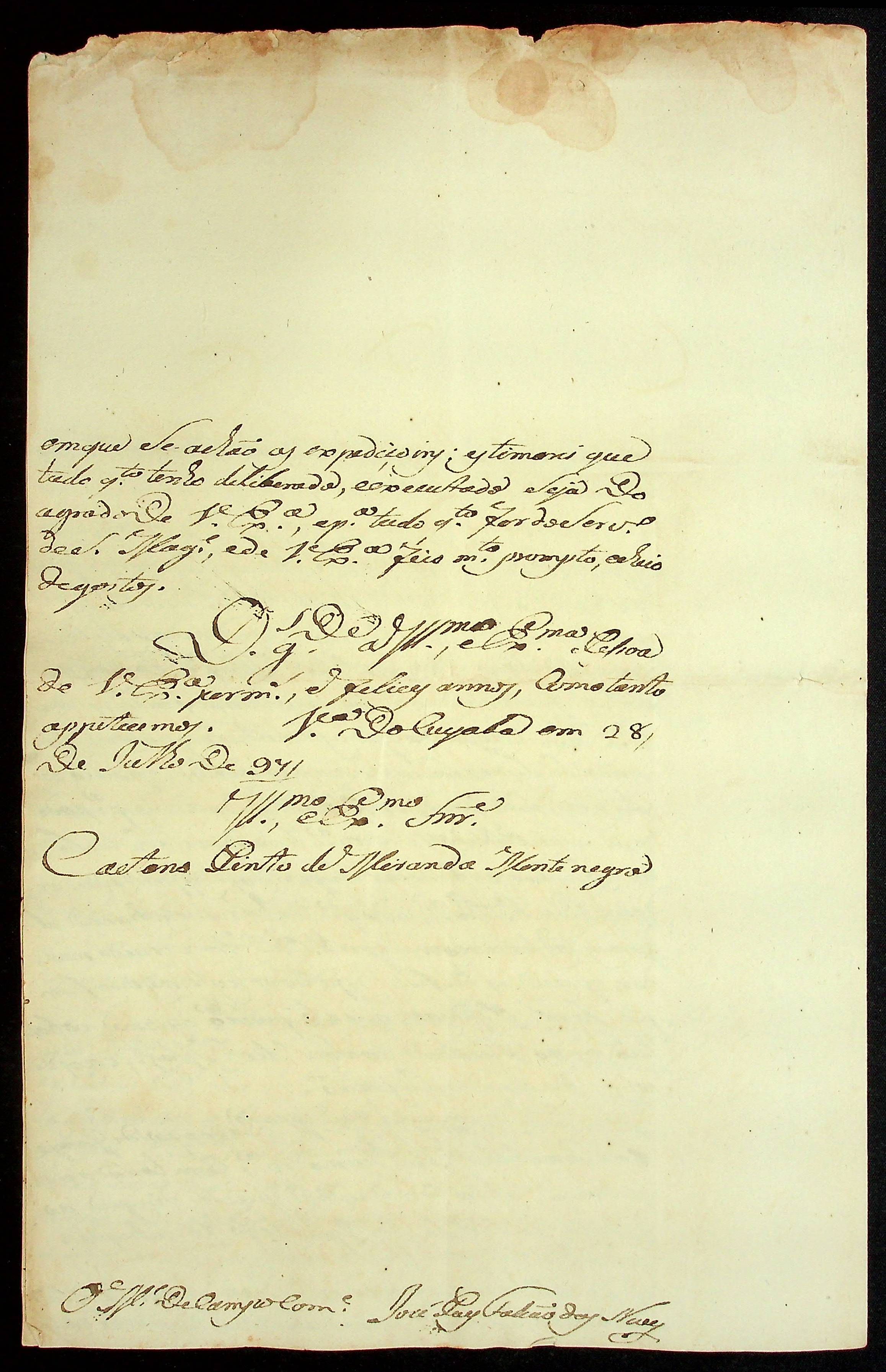 CARTA do Mestre de Campo José Paes Falcão das Neves ao [Governador e Capitão-General da Capitania de Mato Grosso] Caetano Pinto de Miranda e Montenegro.