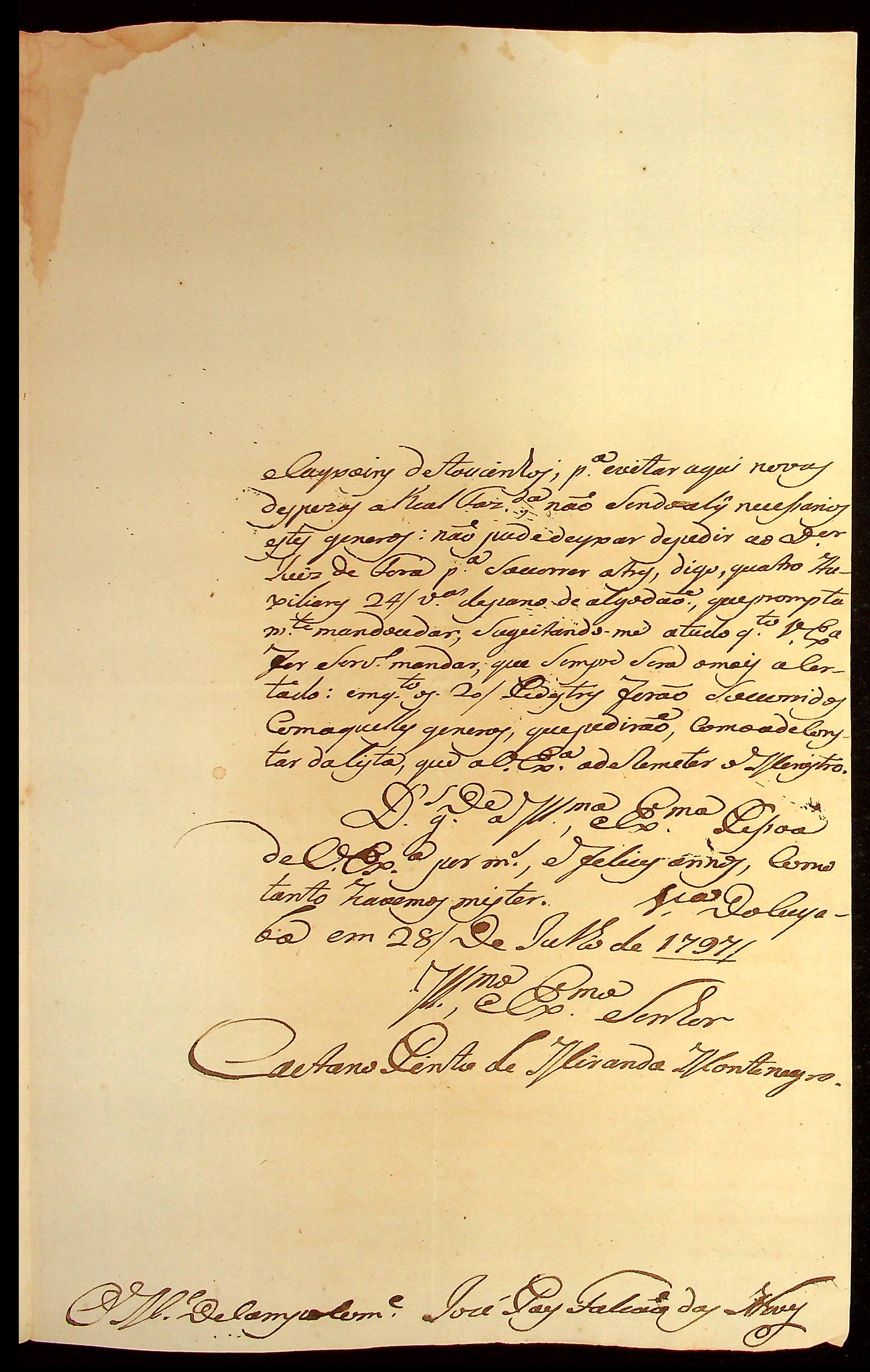 CARTA do Mestre de Campo José Paes Falcão das Neves ao [Governador e Capitão-General da Capitania de Mato Grosso] Caetano Pinto de Miranda e Montenegro.