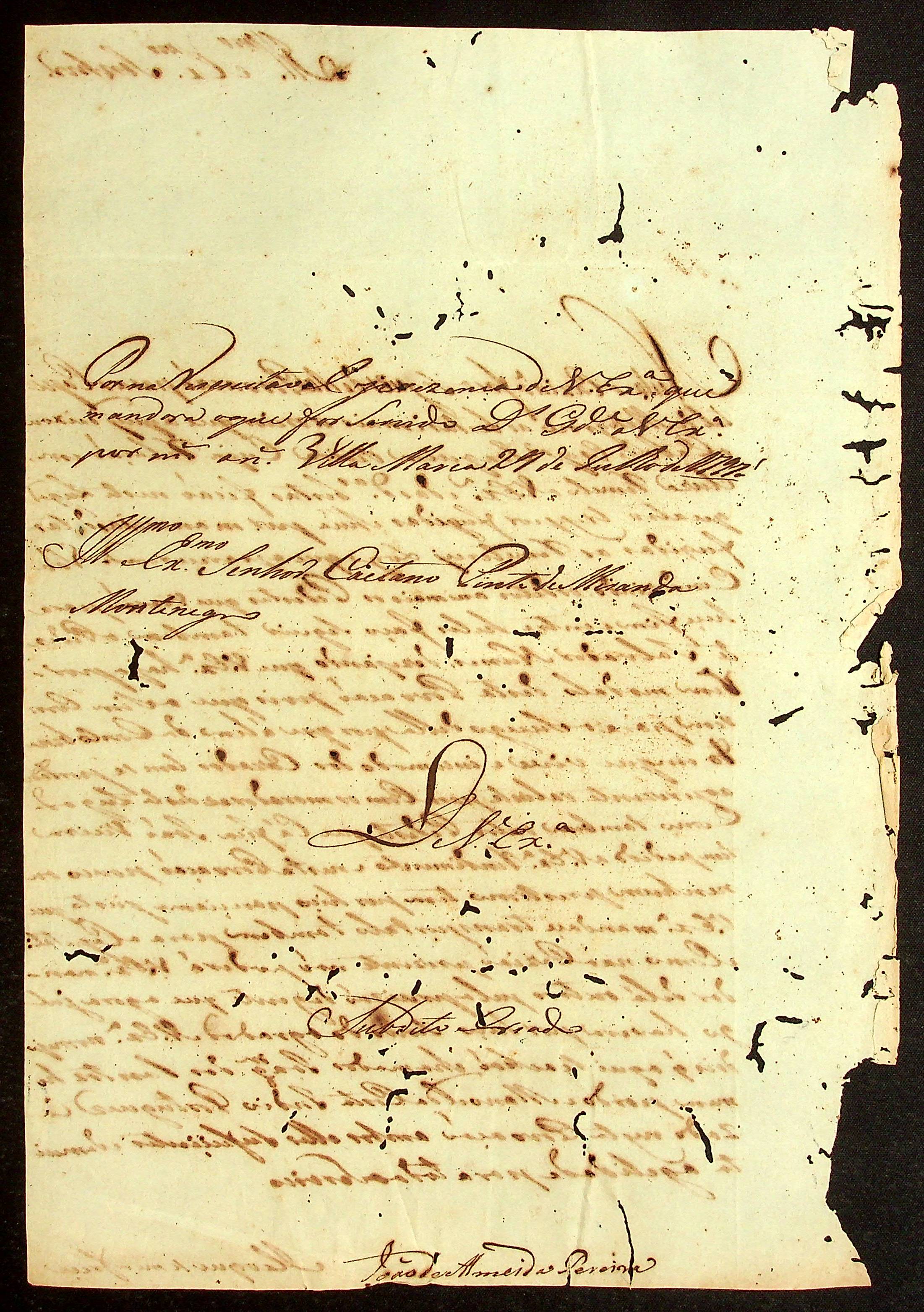 CARTA de João Almeida Pereira ao Governador e Capitão-General da Capitania de Mato Grosso Caetano Pinto de Miranda e Montenegro