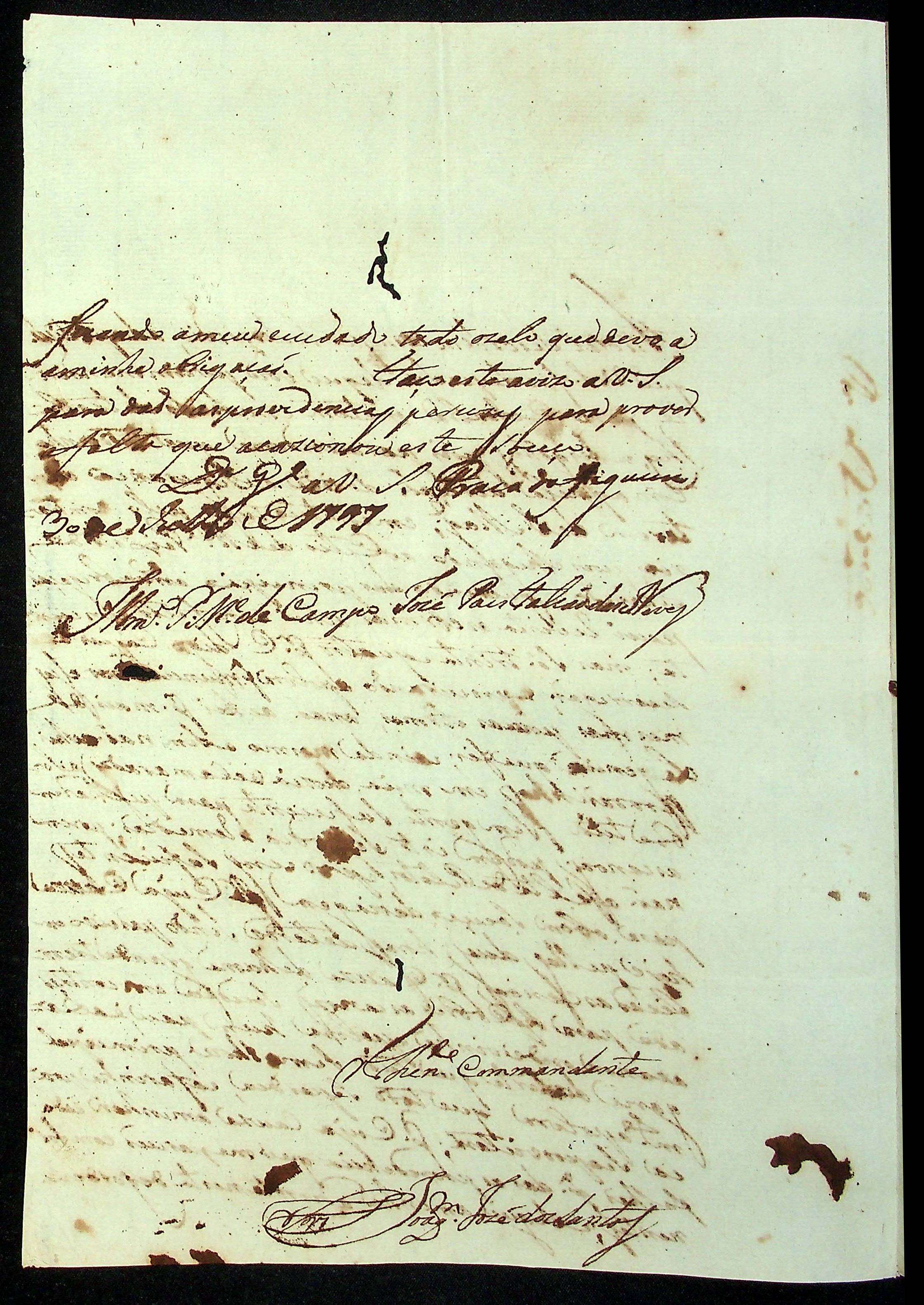 CARTA (incompleta) do Tenente Comandante Joaquim José dos Santos ao Mestre de Campo José Paes Falcão das Neves.