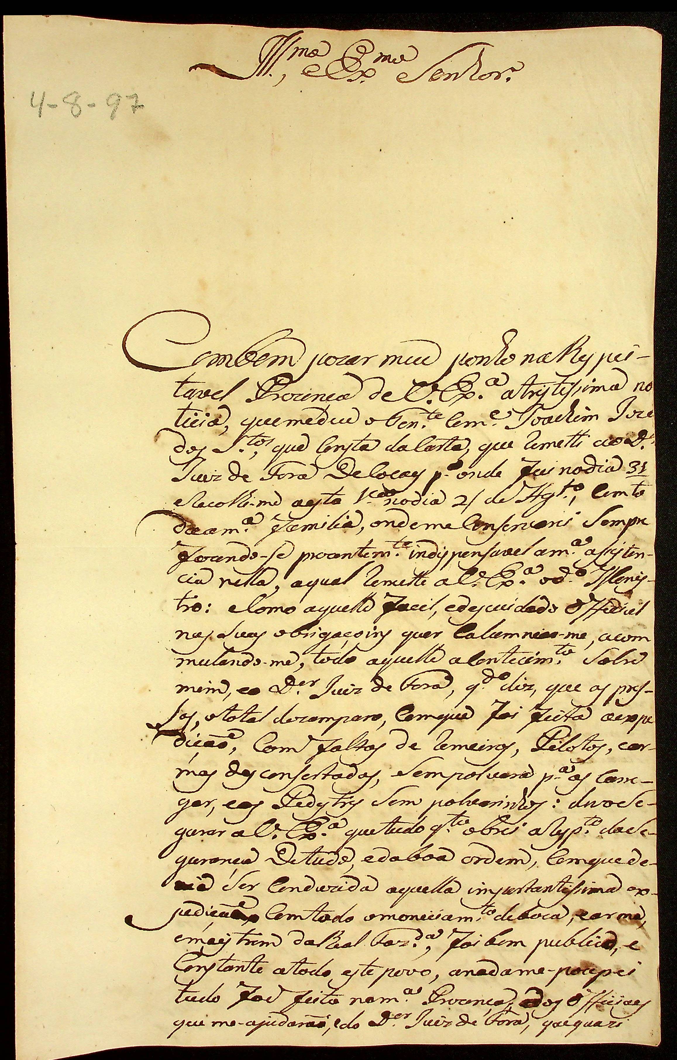 CARTA do Mestre de Campo José Paes Falcão das Neves ao [Governador e Capitão-General da Capitania de Mato Grosso] Caetano Pinto de Miranda e Montenegro.