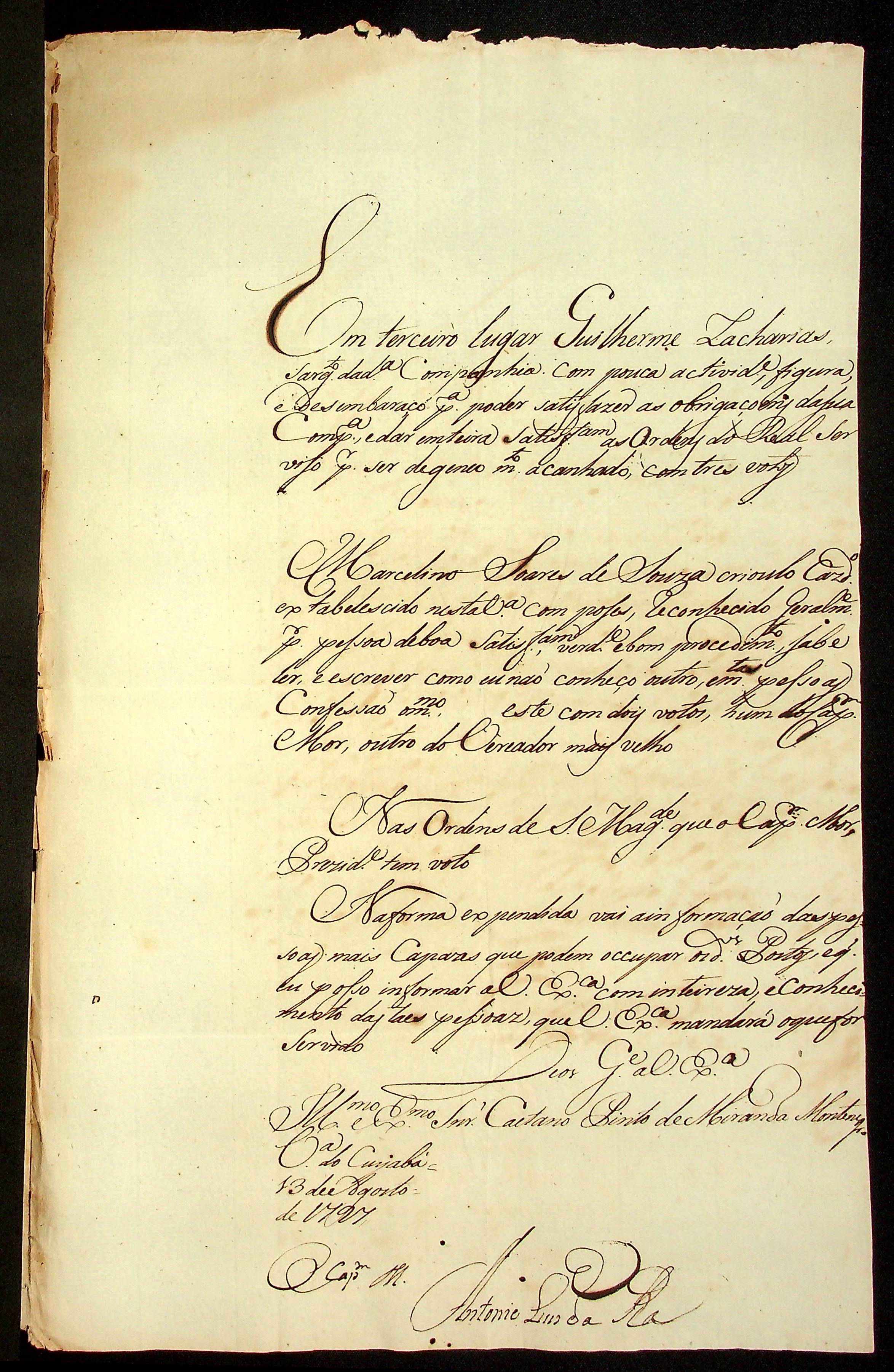 CARTA do Capitão-mor Antônio Luiz da Rocha ao [Governador e Capitão-General da Capitania de Mato Grosso] Caetano Pinto de Miranda e Montenegro.