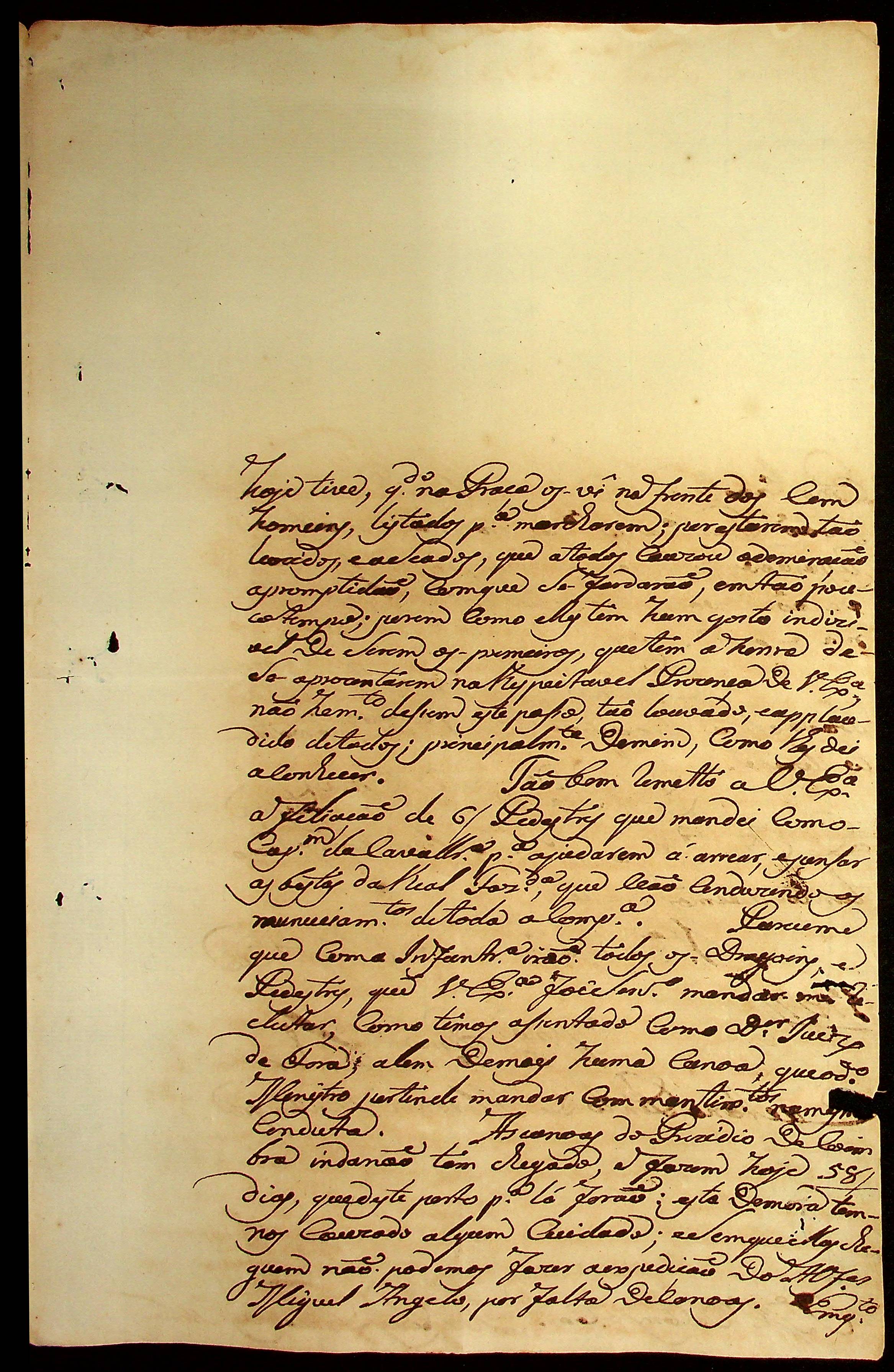 CARTA do Mestre de Campo José Paes Falcão das Neves ao [Governador e Capitão-General da Capitania de Mato Grosso] Caetano Pinto de Miranda e Montenegro.