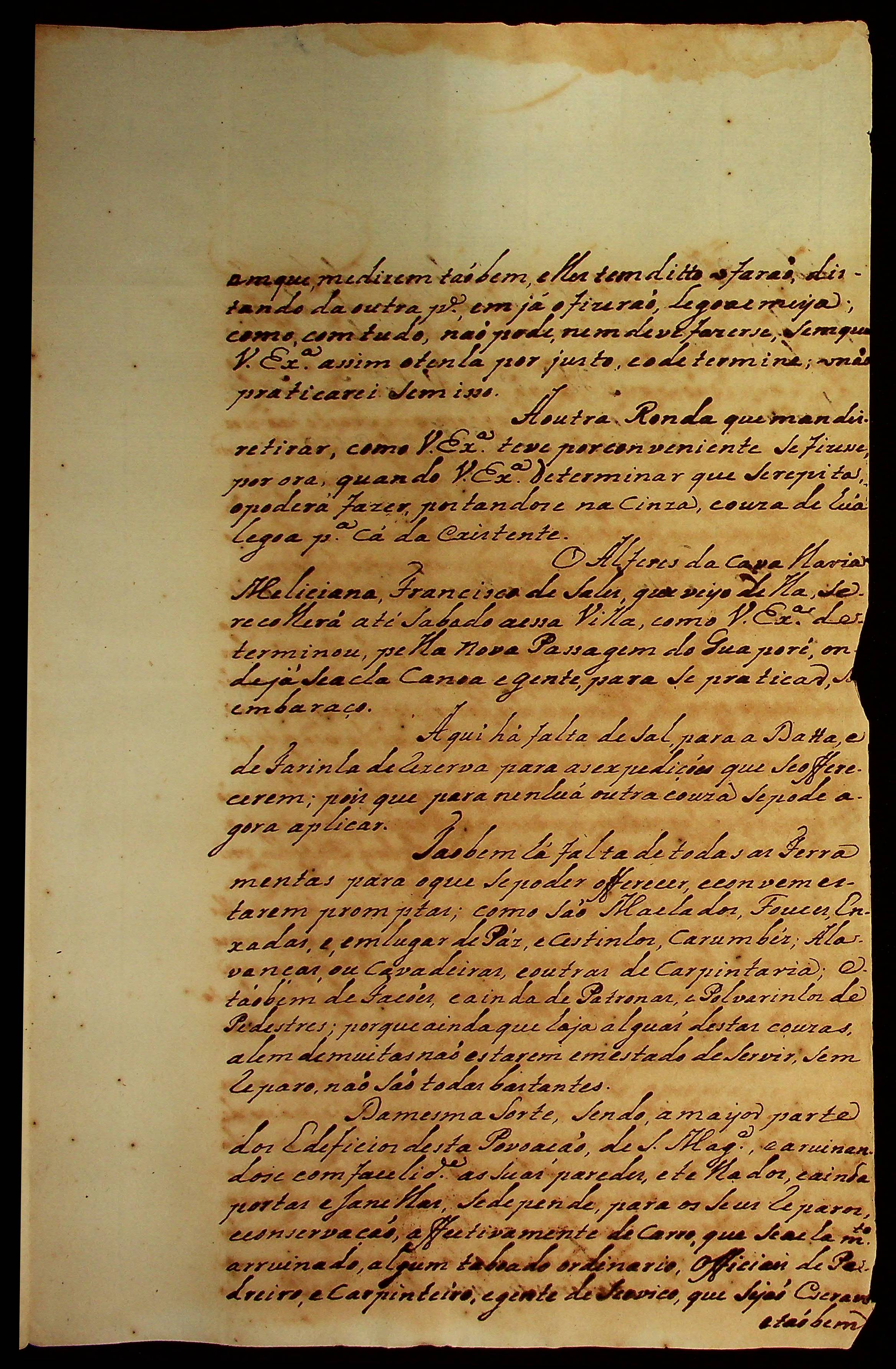 CARTA do [Tenente-Coronel] Antônio Felipe da Cunha Ponte ao [Governador e Capitão-General da Capitania de Mato Grosso] Caetano Pinto de Miranda e Montenegro.