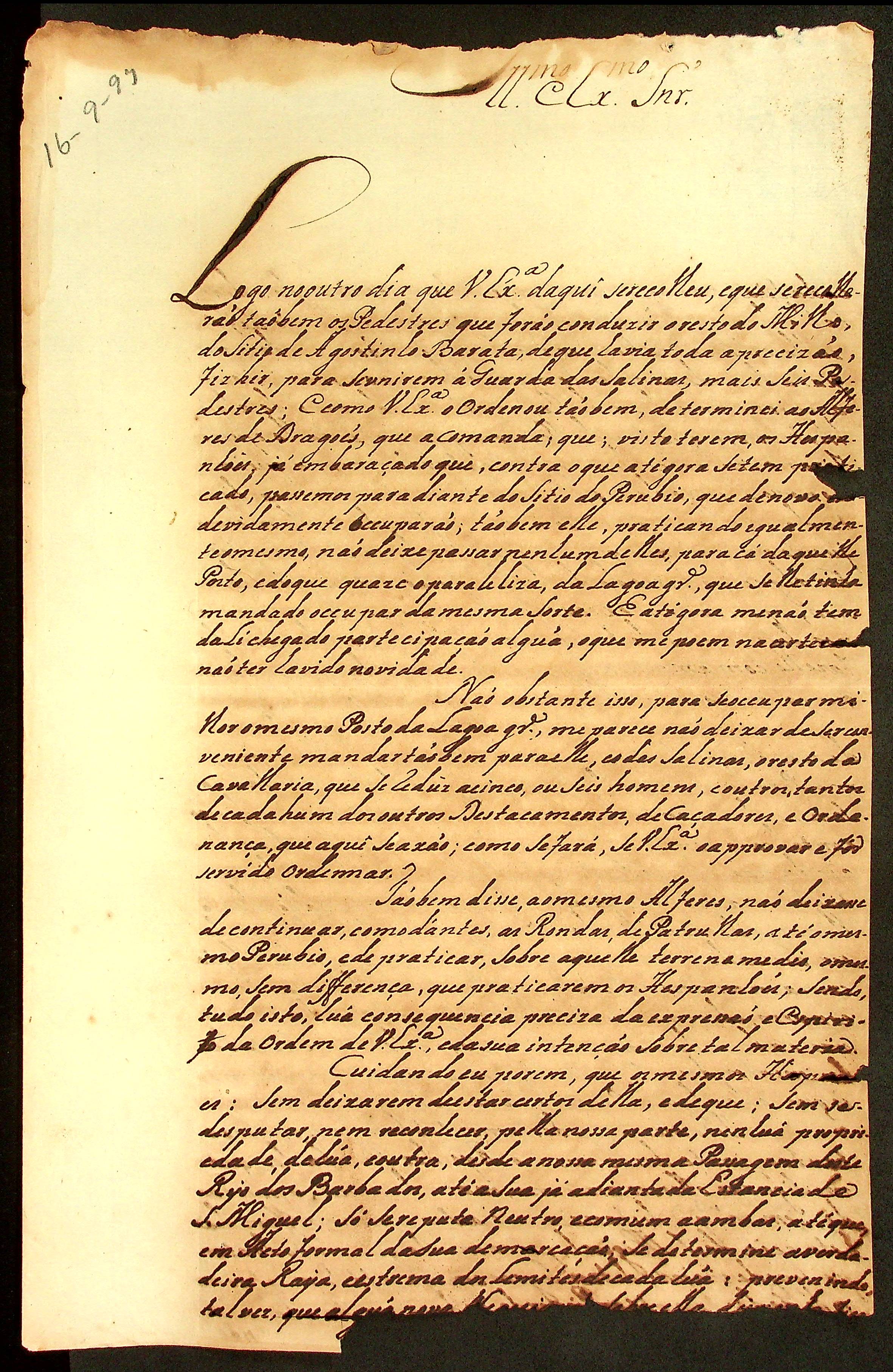 CARTA do [Tenente-Coronel] Antônio Felipe da Cunha Ponte ao [Governador e Capitão-General da Capitania de Mato Grosso] Caetano Pinto de Miranda e Montenegro.