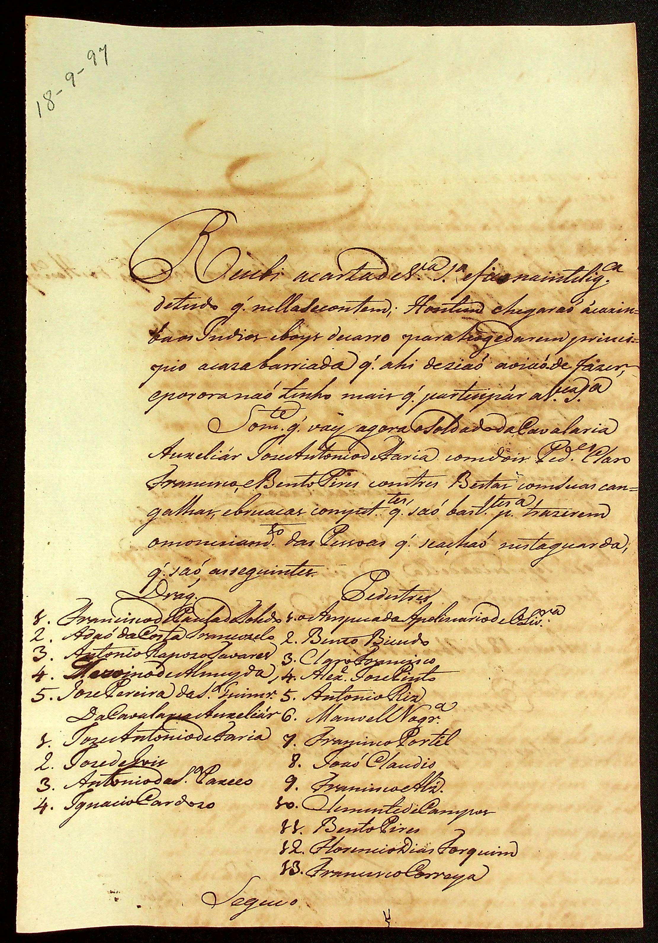 CARTA de Francisco Pedro de Melo ao Coronel Antônio Felipe da Cunha Ponte.