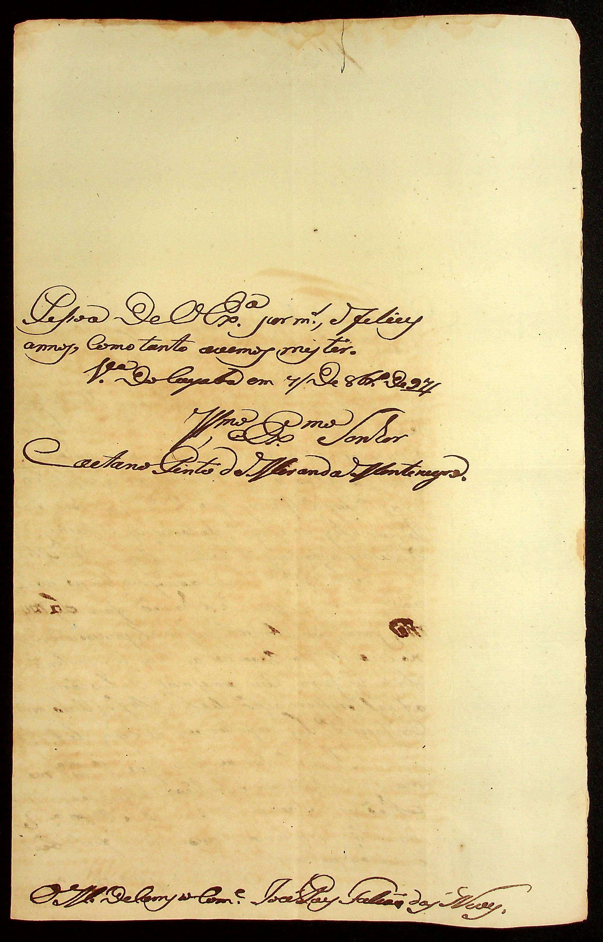 CARTA do Mestre de Campo José Paes Falcão das Neves ao [Governador e Capitão-General da Capitania de Mato Grosso] Caetano Pinto de Miranda e Montenegro.