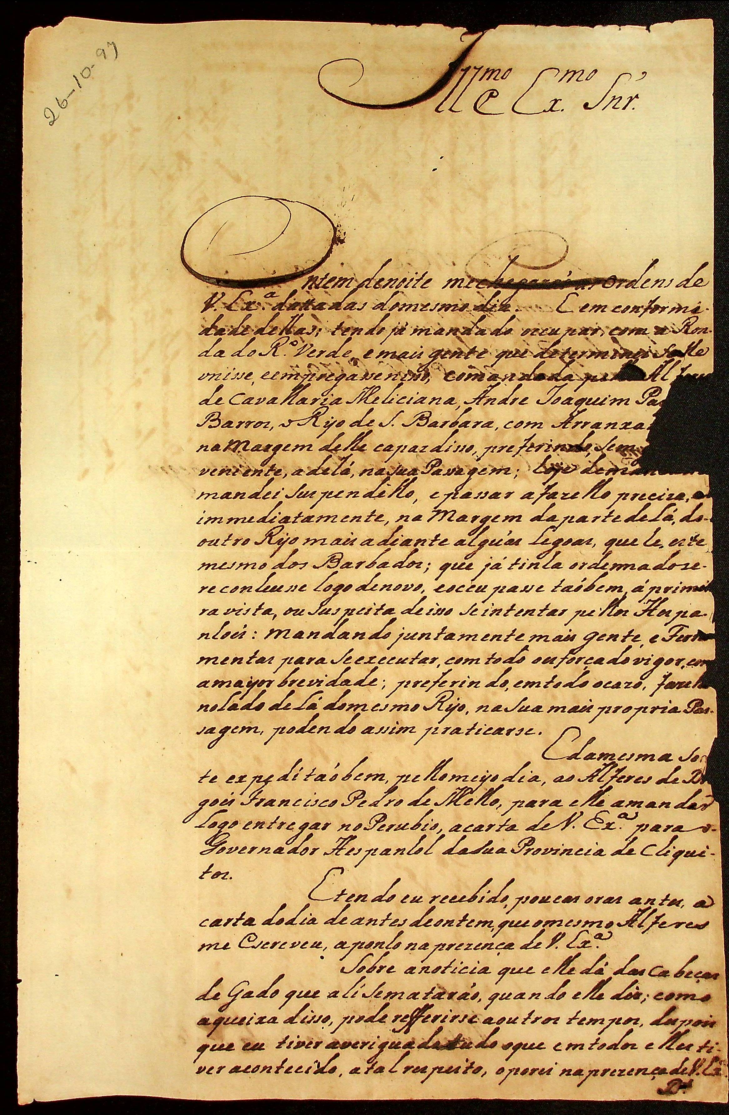 CARTA do [Tenente-Coronel] Antônio Felipe da Cunha Ponte ao [Governador e Capitão-General da Capitania de Mato Grosso] Caetano Pinto de Miranda e Montenegro.