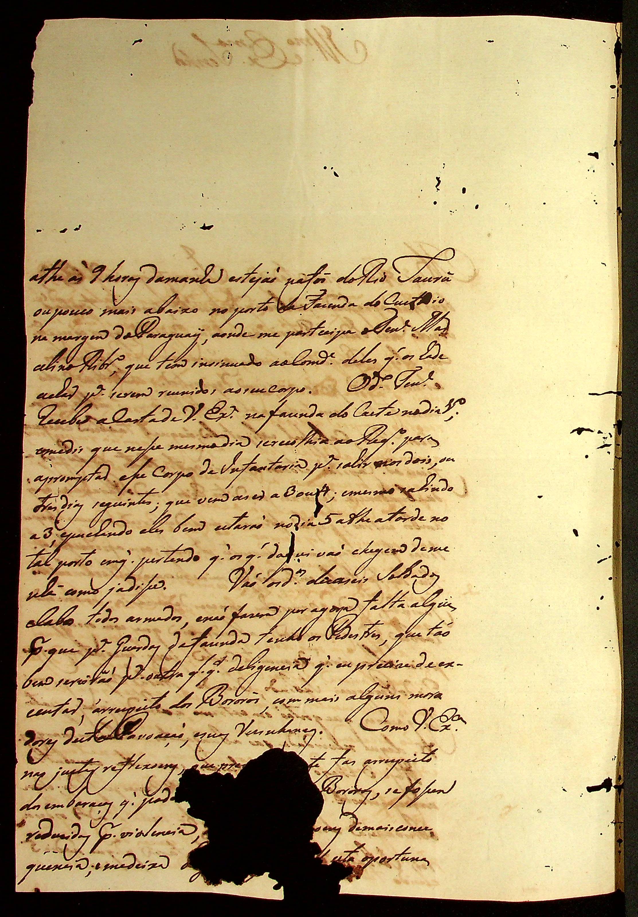 CARTA de Manoel Rabelo Leite ao [Governador e Capitão-General da Capitania de Mato Grosso] Caetano Pinto de Miranda e Montenegro.