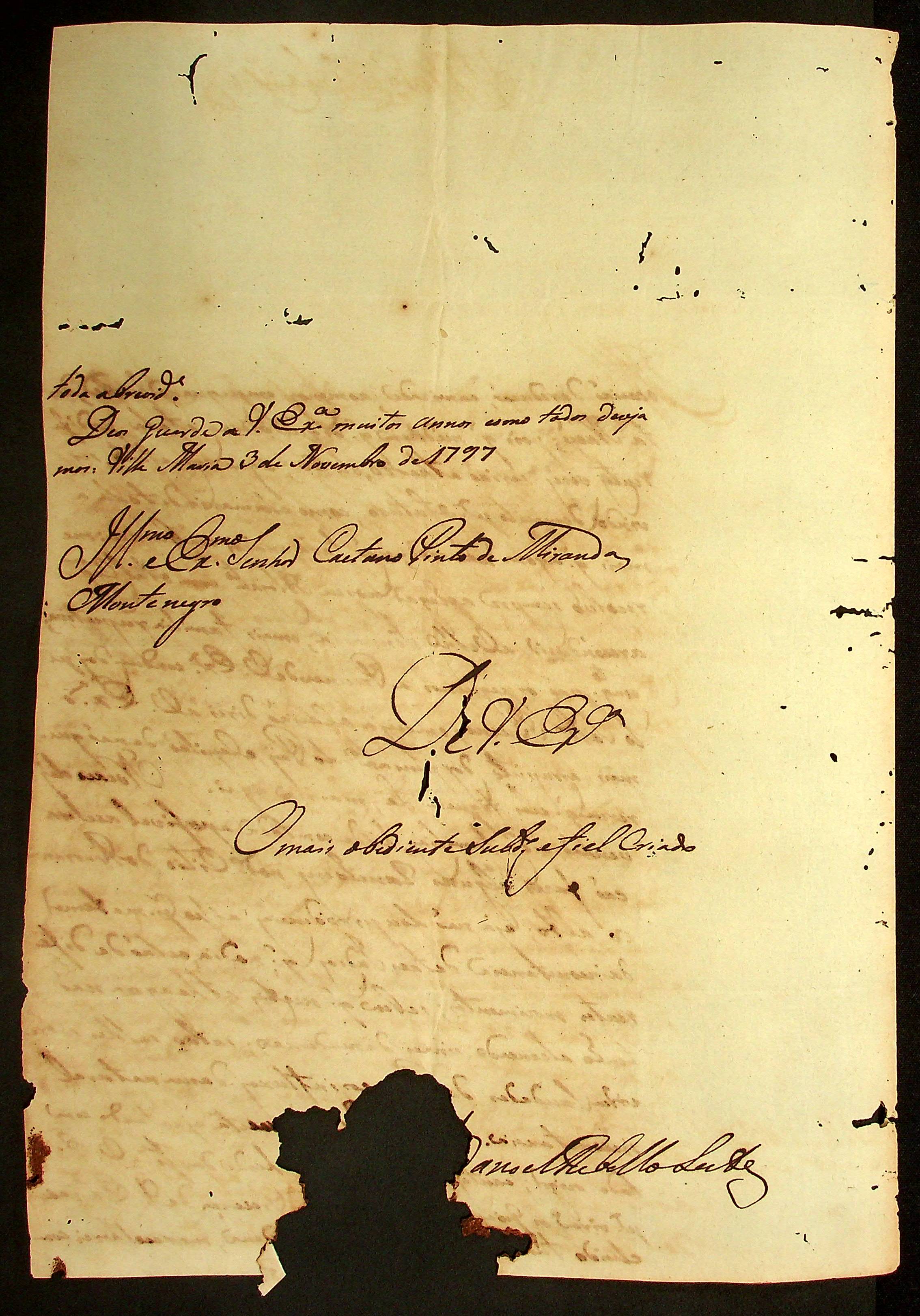 CARTA de Manoel Rabelo Leite ao [Governador e Capitão-General da Capitania de Mato Grosso] Caetano Pinto de Miranda e Montenegro.