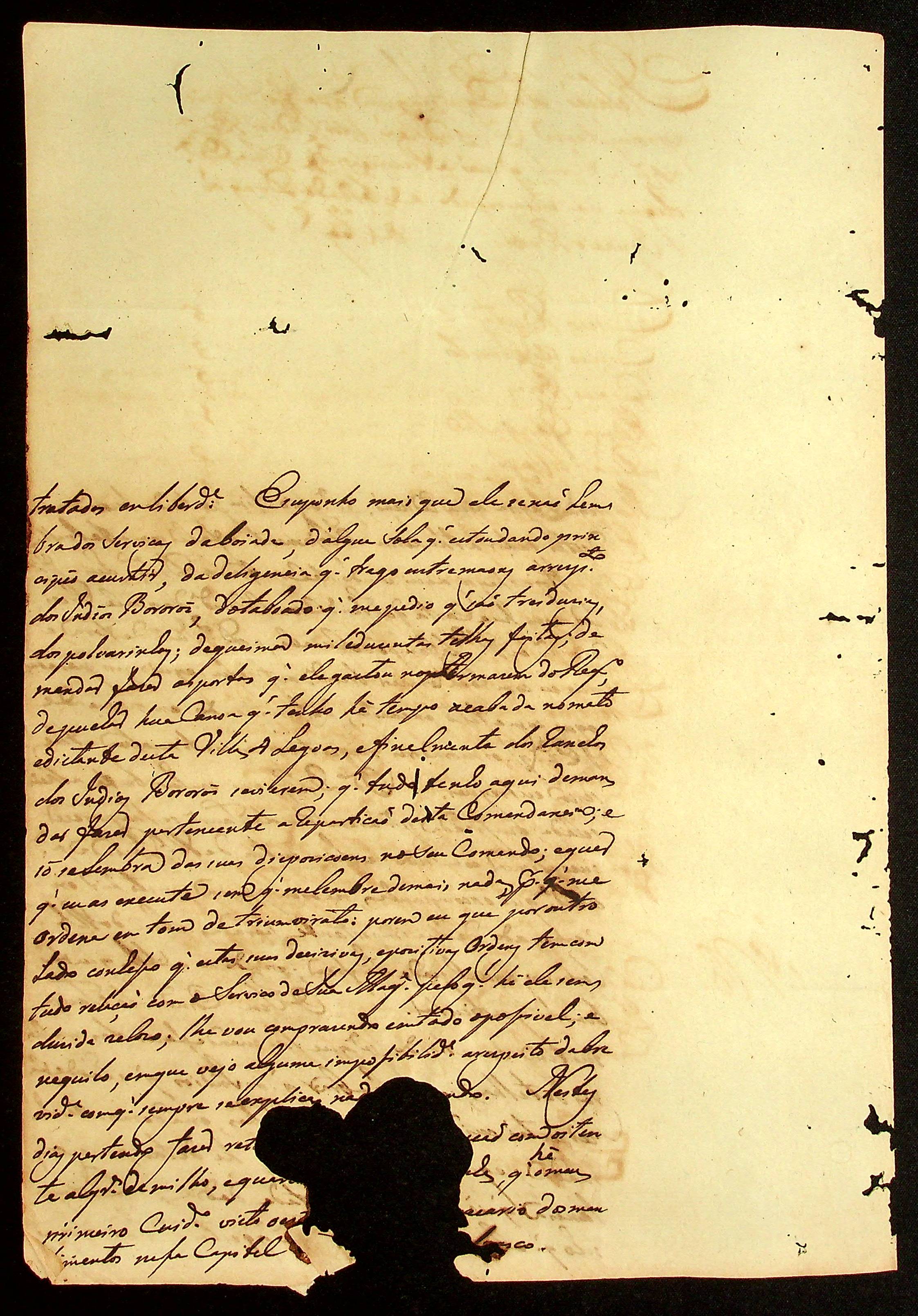 CARTA de Manoel Rabelo Leite ao [Governador e Capitão-General da Capitania de Mato Grosso] Caetano Pinto de Miranda e Montenegro.