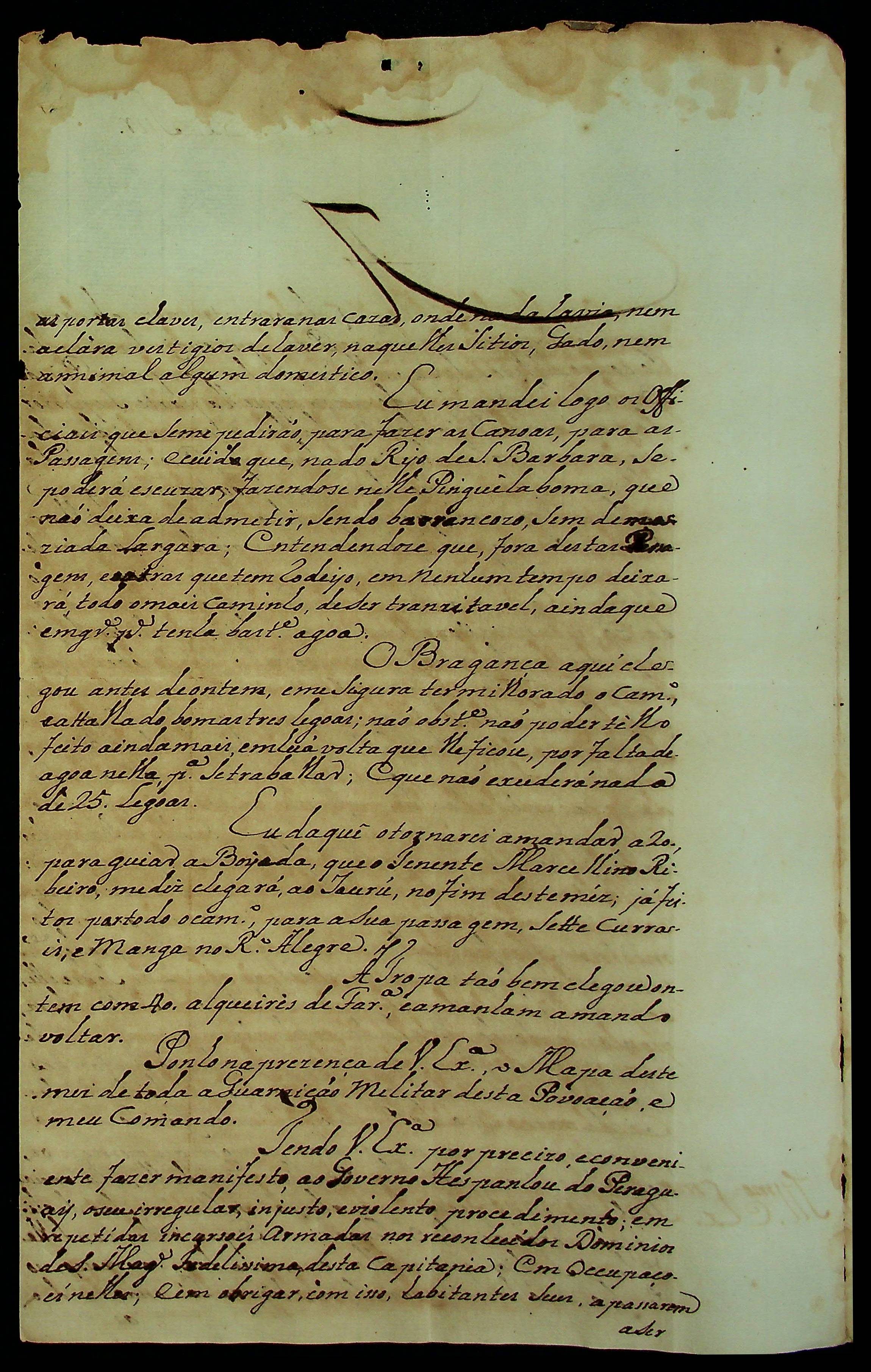 CARTA do [Tenente-Coronel] Antônio Felipe da Cunha Ponte ao [Governador e Capitão-General da Capitania de Mato Grosso] Caetano Pinto de Miranda e Montenegro.
