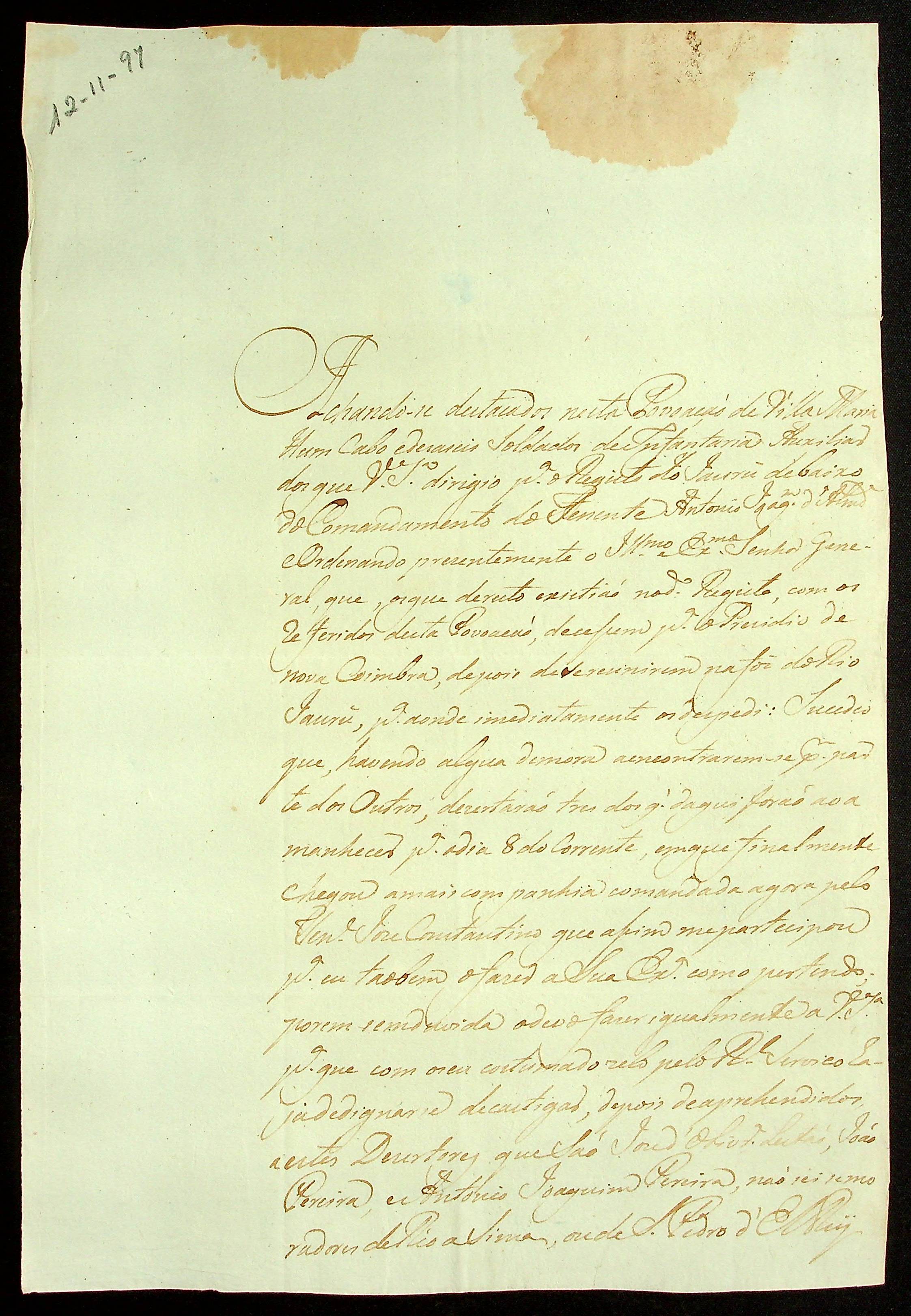 CARTA de Manoel Rabelo Leite ao Mestre de Campo José Paes Falcão das Neves.